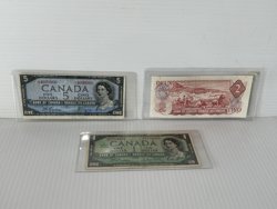 (1) 1967 One Dollar Bill, (1) 1974 Two Dollar Bill and (1) 1954 Five Dollar Bill