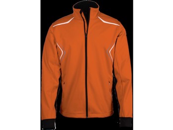 Style 988, 92% breathable polyester, 8% spandex, water & wind resistant, low moisture absorption, quick dry material, runners thumbs holes, side pockets, reflective piping on front, back and sleeves, vented back with Velcro embroidery access