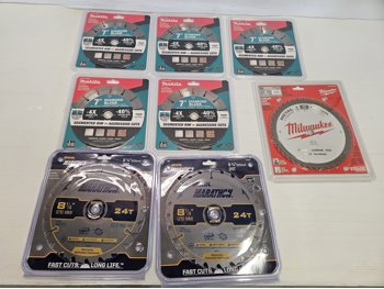(5) Makita 7 inch diamond blade (2) Irwin marathon 8-1/4 inch (1) Milwaukee 8 inch stainless aluminum steel blade