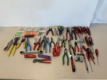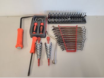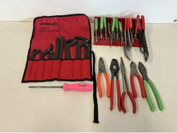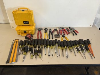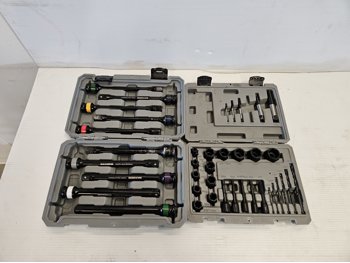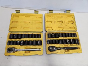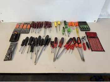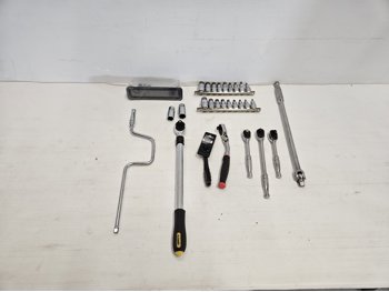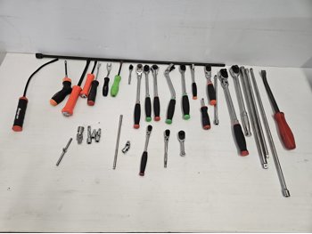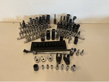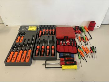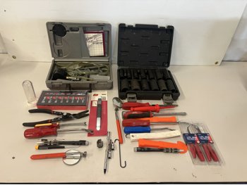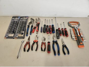 Qty of (2) 7 piece impact swivel socket set (10) screwdrivers (7) pliers & snips (1) socket extension (1) certified socket and ratchet set 1/4 inch 3/8 inch drive