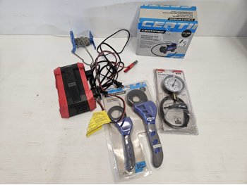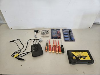 (1) 12 v window defogger (1) stanley socket set (1) ratchet screwdriver (1) pocket digital multimeter (6) screwdrivers