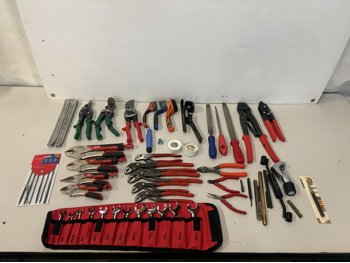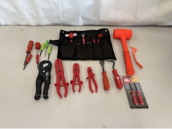 Cutters, plyers, punch & chisel set, snap ring plyers, mallet, brush