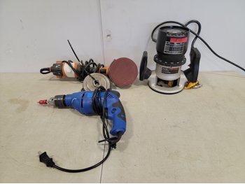 anchor chain, socket set, router, reciprocating saw, angle grinder, belt sander, 3/8 inch heavy duty drill, 5 inch random orbit sander