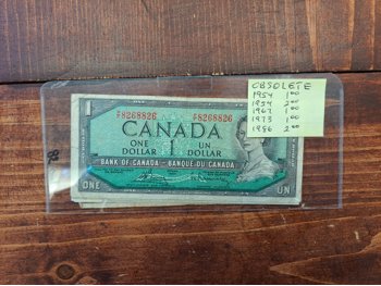 (5) Obsolete Canadian 1 & 2 Dollar Bills