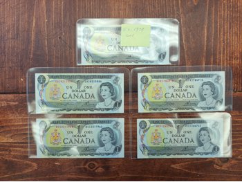 (5) 1973 Canadian 1 Dollar Bills