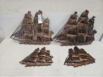 Qty of (4) Vintage 1960 Ft Large Dart Coppercraft Guild Sailing Schooner Ship