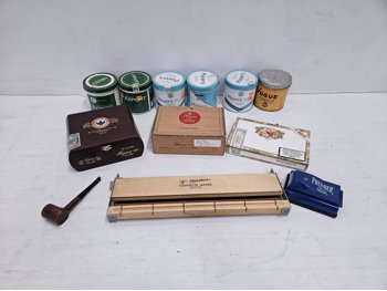 1994 Vintage Tobacco Pipe, Cigarette Rollers, Tobacco Tins, Cigar Boxes