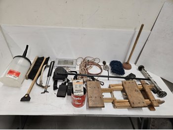 (2) Axes, (1) Splitting Maul, (1) Tire Iron, (3) Wire Brushes