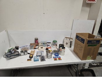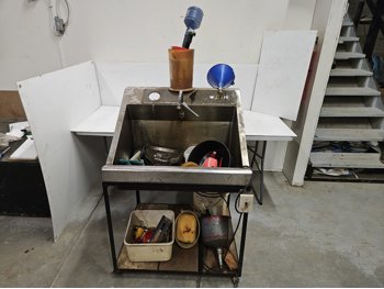 32 inch x 27 in, large qty of funnels, parts washing tools