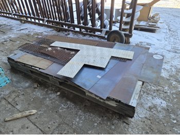 (1) 4 ft 11 gauge steel, (1)2 ft X 8 ft 11 gauge steel plate, piece of aluminum checker plate, miscellaneous steel