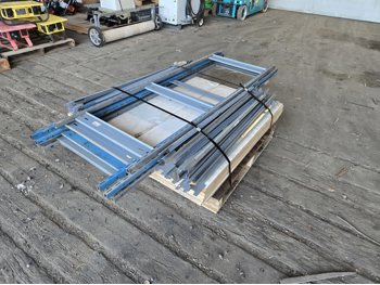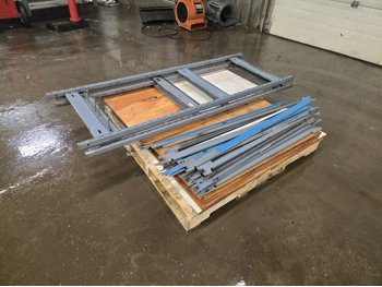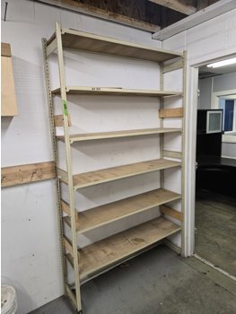 (9) 4 ft wood shelfs, 13 extra shelf beams, (6) 72 inch posts, (2) 48 inch posts