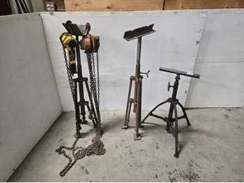 (3) Adjustable Pipe Stands (1) Chain Hoist (1) 3/4 Ton Lever Hoist