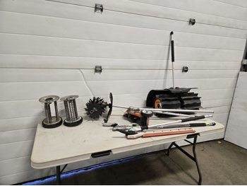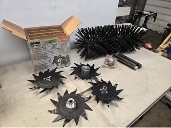 power rake set, (2) brushes, (1) tiller, (1) hedge clipper