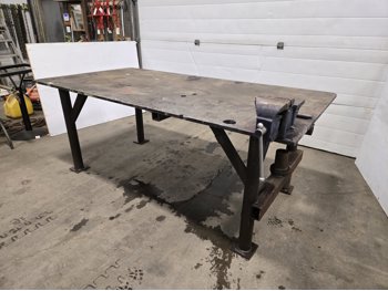 6 inch vise, plate steel top, 37 inch high, real nice heavy welding and fabrication table