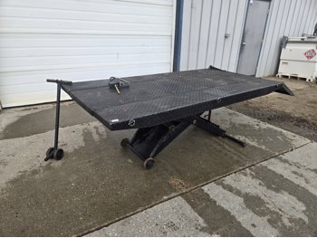 48 inch wide X 93 inch long, lift height 32 inch, 20 inch ramp, transport handle with wheels, good working condition