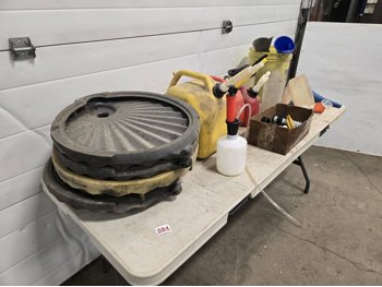 Qty of Funnels, Jerry Cans, (4) Barrel Funnels, Oil Pitchers
