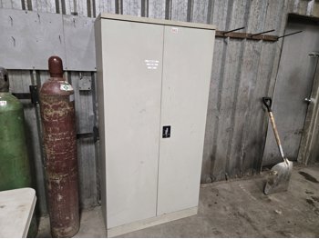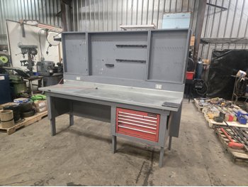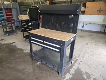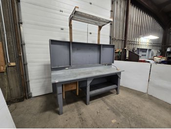 wired with plugs and light, 29 inch deep, 37 inch high, with folding door tool storage above bench