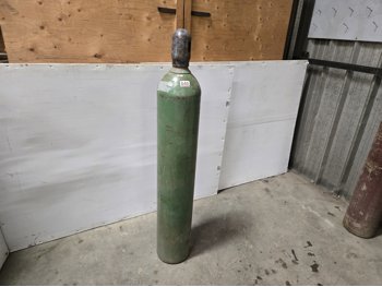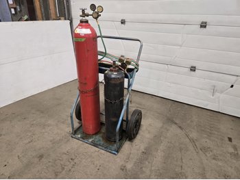 244 cu ft oxygen bottle is at 900 PSI (just under half full), 150 cu ft acetylene bottle is at 150 PSI, just installed new torch and hoses, bottles can be exchanged at Parts Stop in Spruce Grove