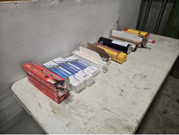 (3) Boxes of Soudotec stud removal rod, (1) 11 lb box 1/8 7018 sealed box, (1) 11 lb 3/16 8018 sealed box, (1) stainless steel 3/32 sealed box, (3) Partial boxes of stud extracting rod, (1) Partial box 1/8 chamfer rod, (1) 20 lb box of 1/8 down hand rod, (1) partial tube of 309 stainless steel rod, (2) partial hard surfacing boxes, (3) miscellaneous rods, qty of hard surfacing rods