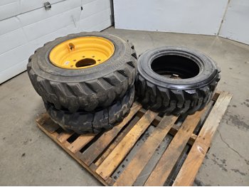 (2) 10-16.5 On Skid Steer Tires on JCB Rims (1) Unused 10-16.5 Tire