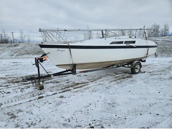 water ballast, swing up keel, jib sail, genoa, Garmin striker fish finder, sleeps 4, bathroom, Tohatsu 6 HP 4 stroke gas outboard engine, bumper pull, MacGregor S/A boat trailer, 215/75R14 tires