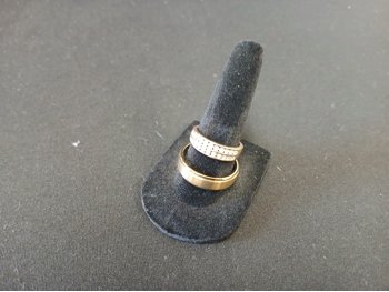 Ladies ring-Two Channels size unknown containing (22) diamonds, size unknown. Men's ring, size unknown.