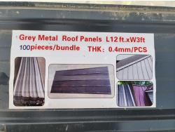 3039 (100) 12 Ft Grey Metal Roofing Panels (Unused)