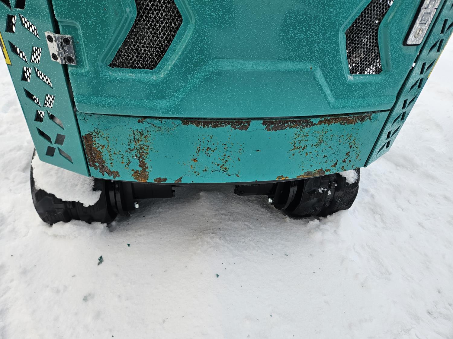 Open station, 13.5 HP gas engine, 15 inch dig bucket, manual thumb, 2 Ft 8 inch stick, backfill blade, 7 inch rubber tracks