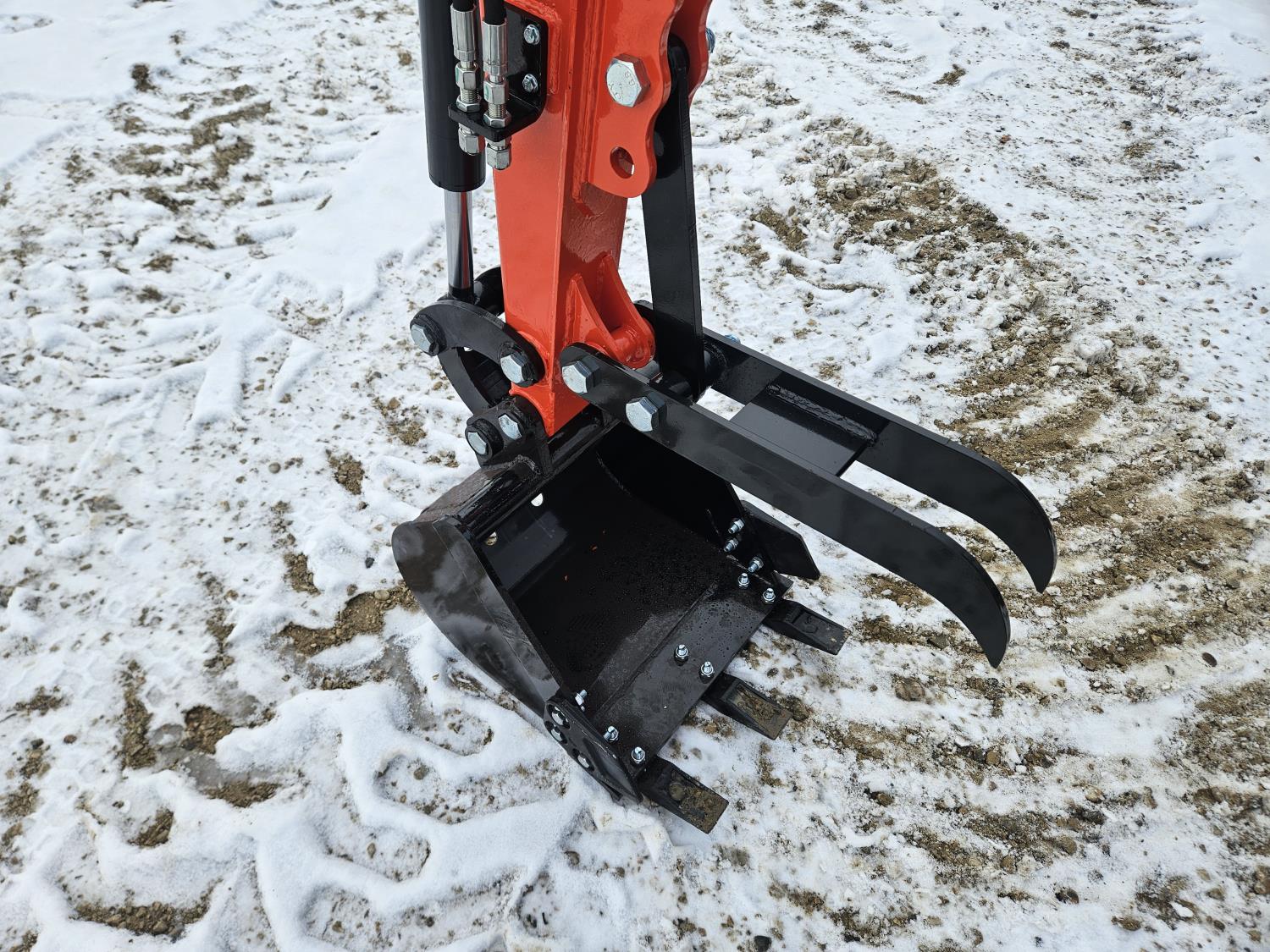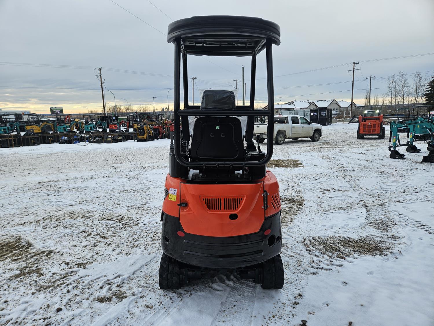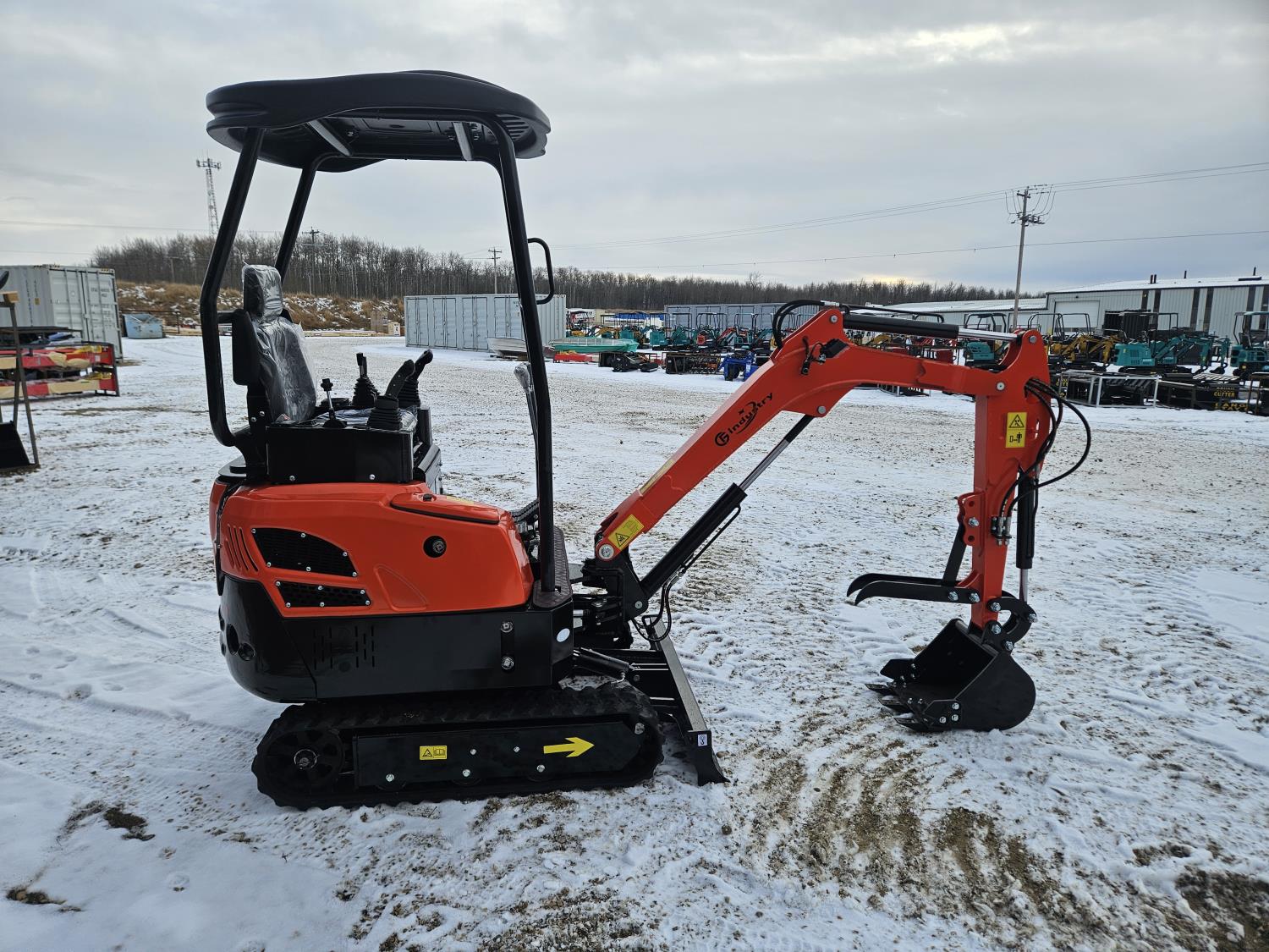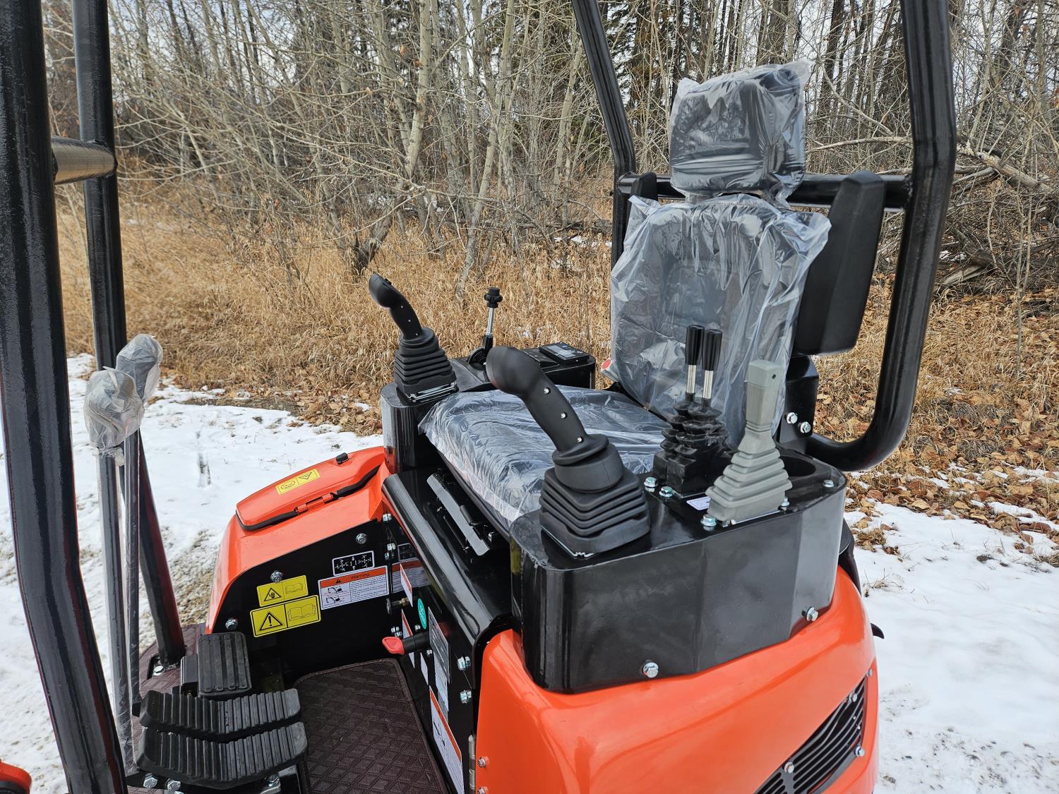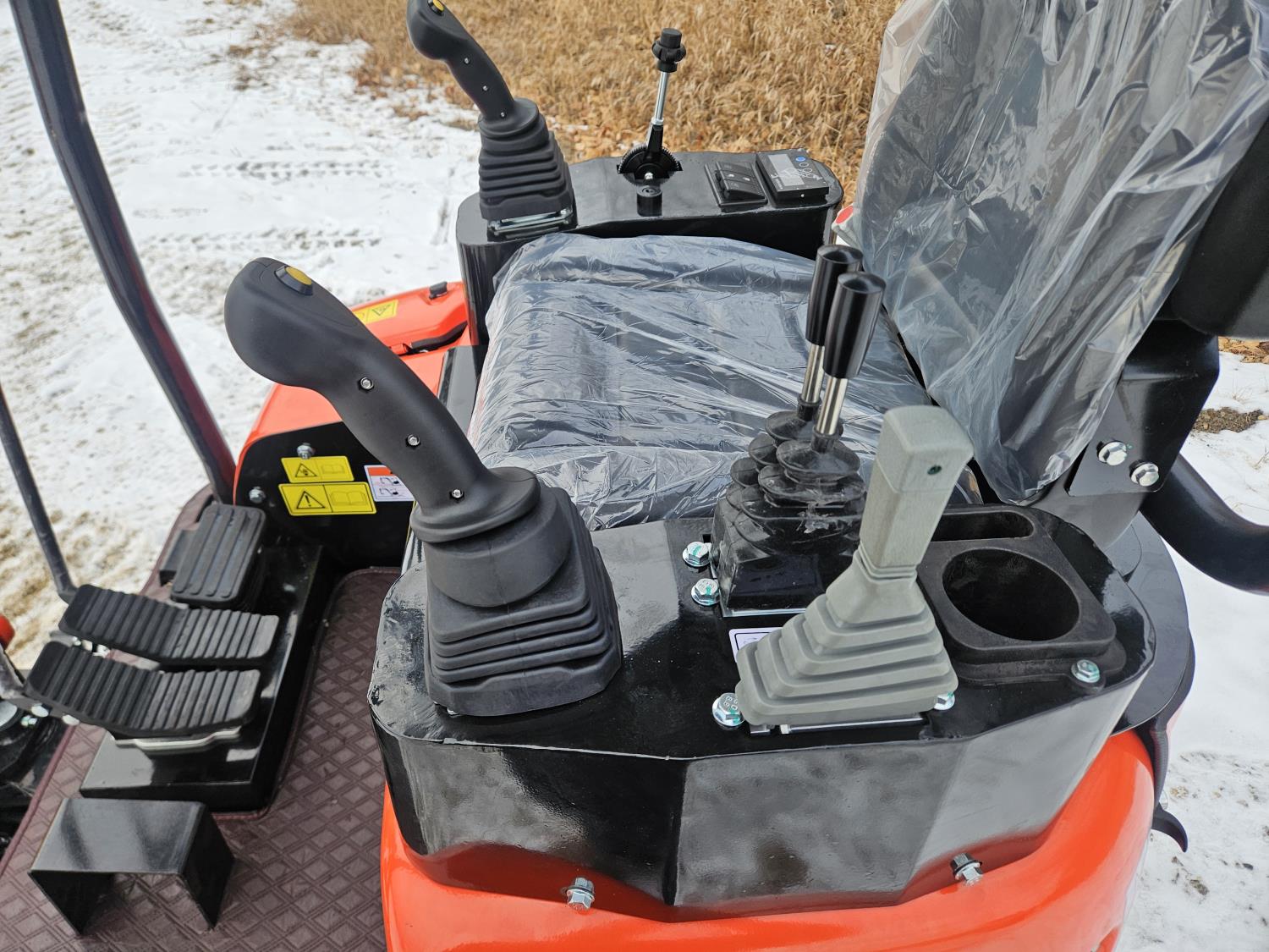 Open station, 23HP gas engine, 15 inch dig bucket, manual thumb, 38 inch stick, backfill blade, 7 inch rubber tracks