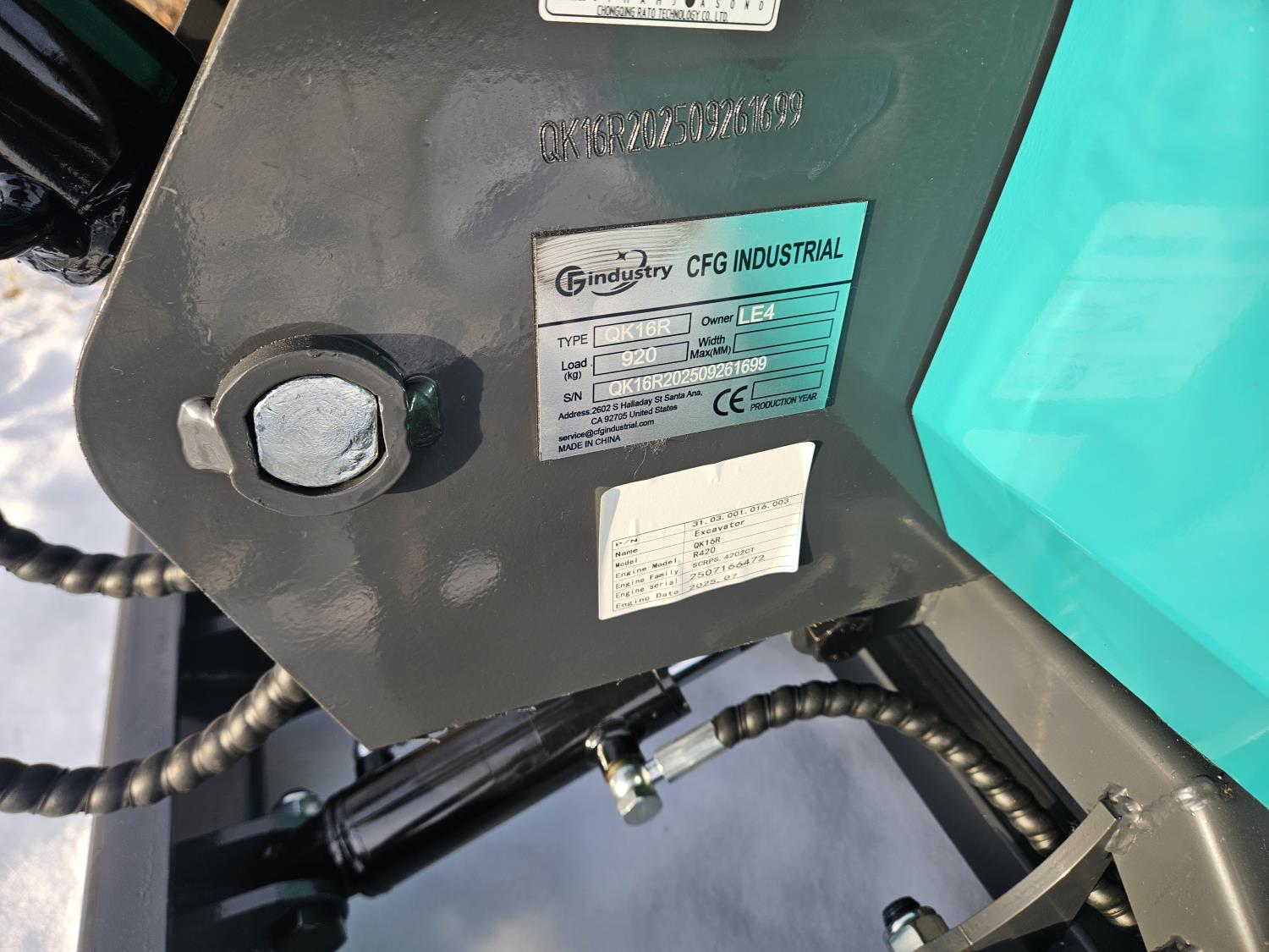 Open station, gas engine, 15 inch dig bucket, hydraulic thumb, 2 Ft 8 inch stick, backfill blade, 7 inch rubber tracks