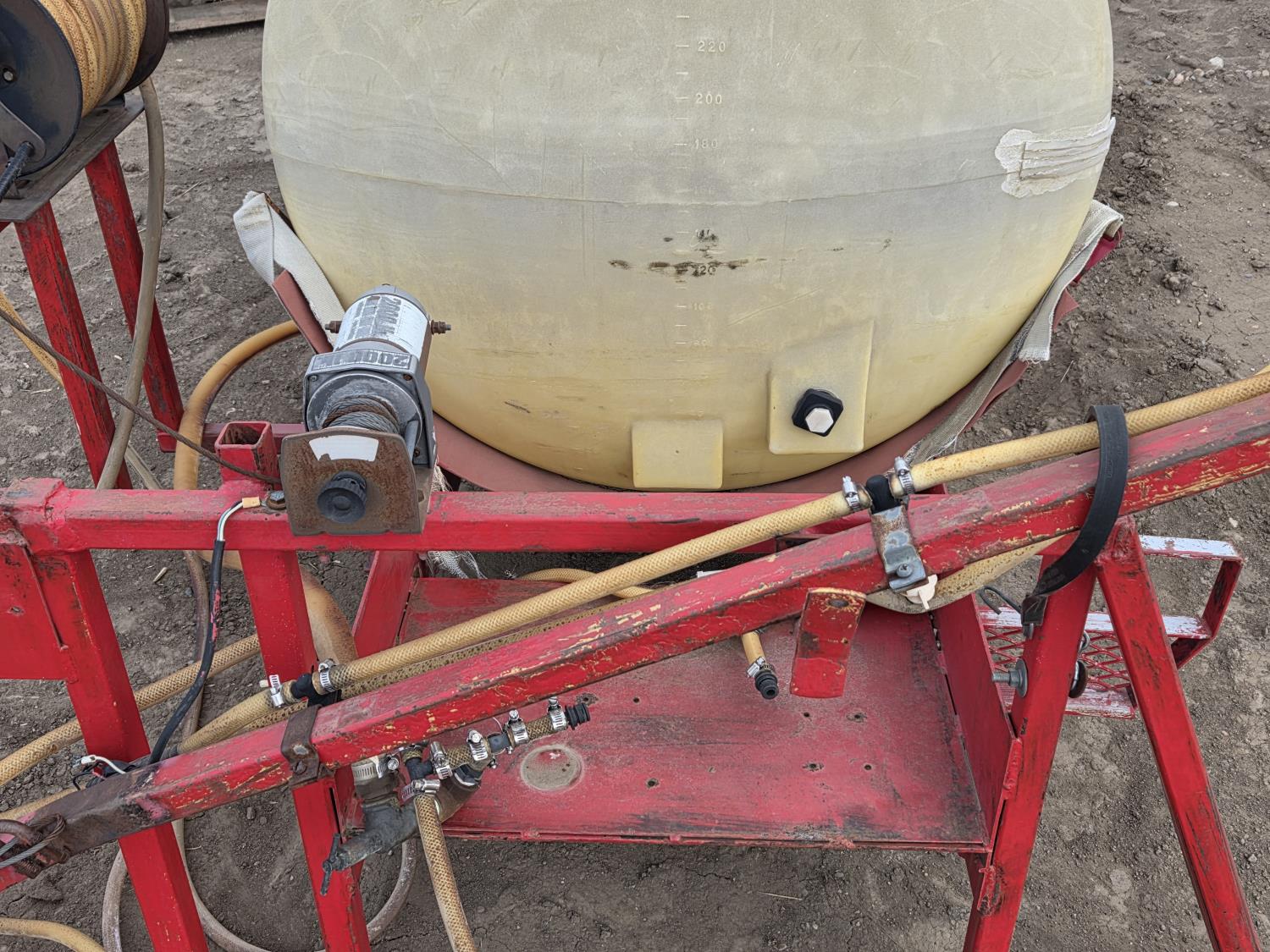 300 gallon poly tank, electric driven, no pump, 1 nozzle body