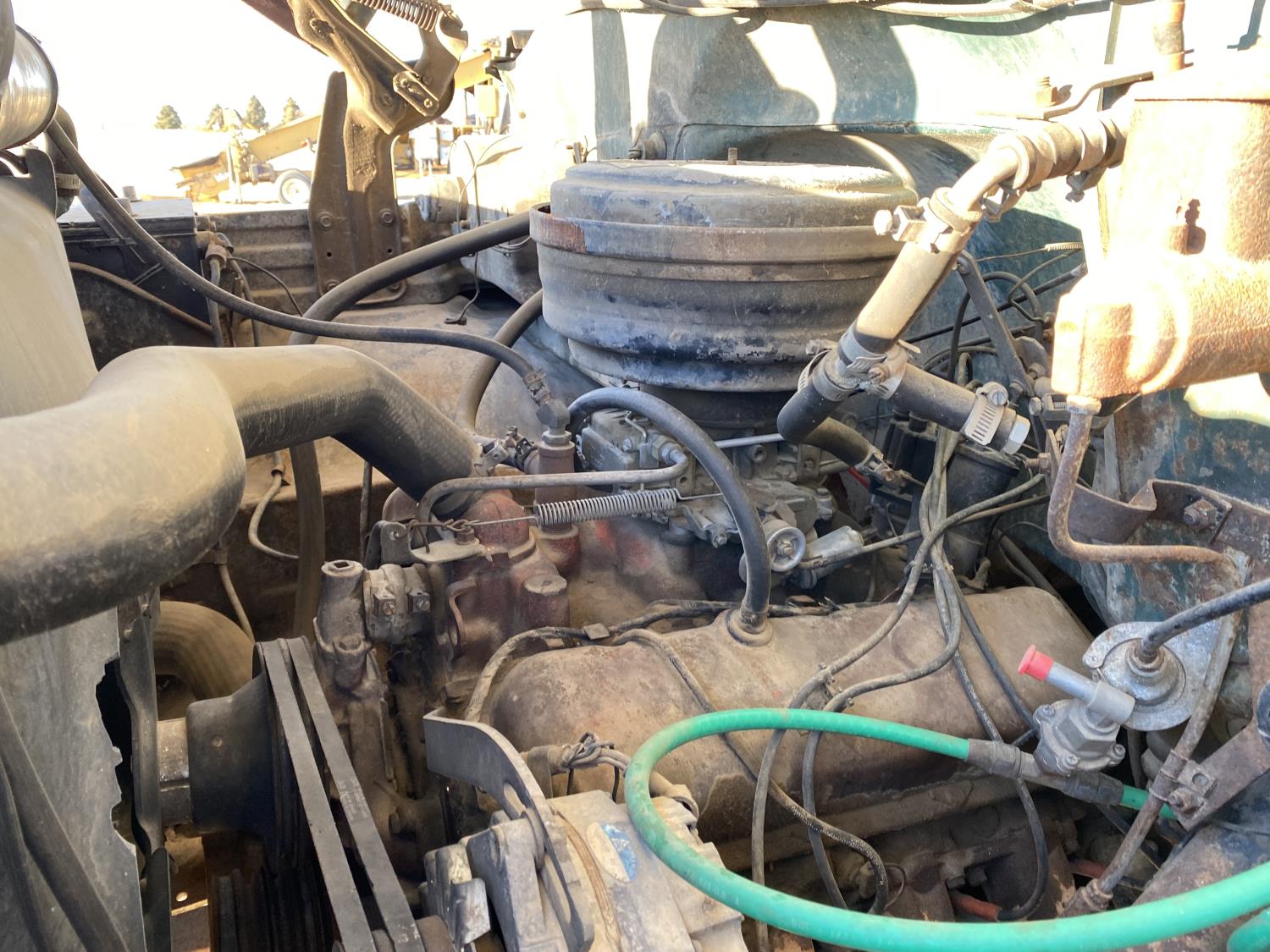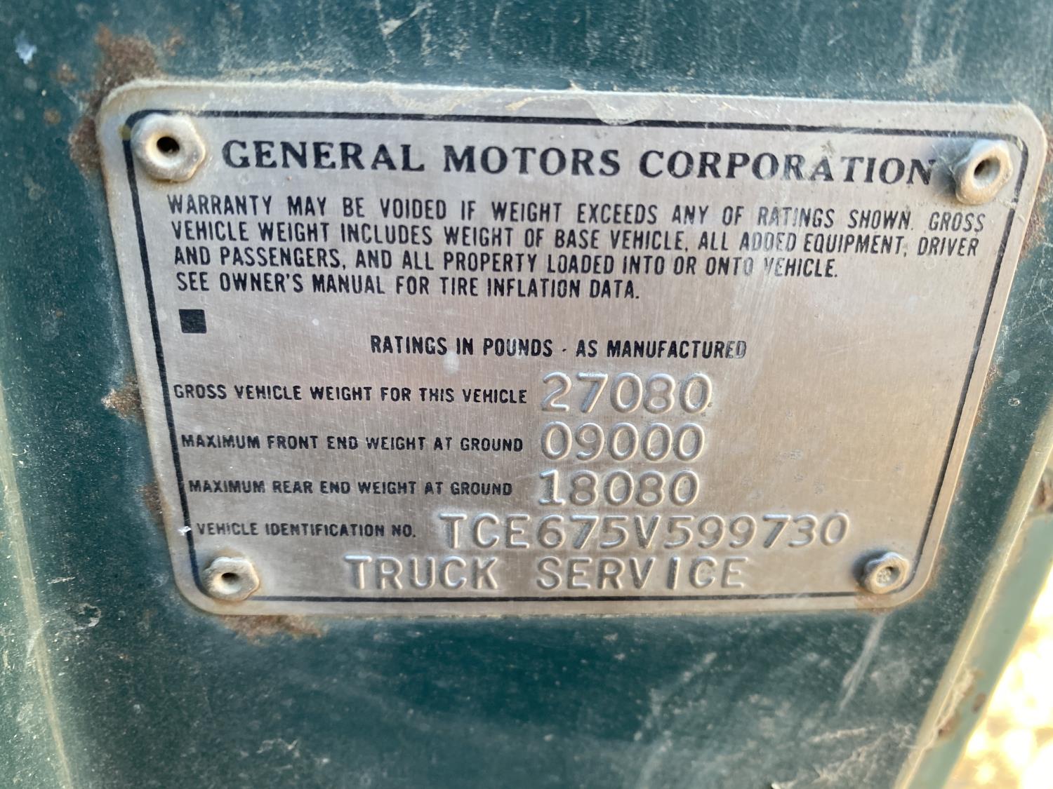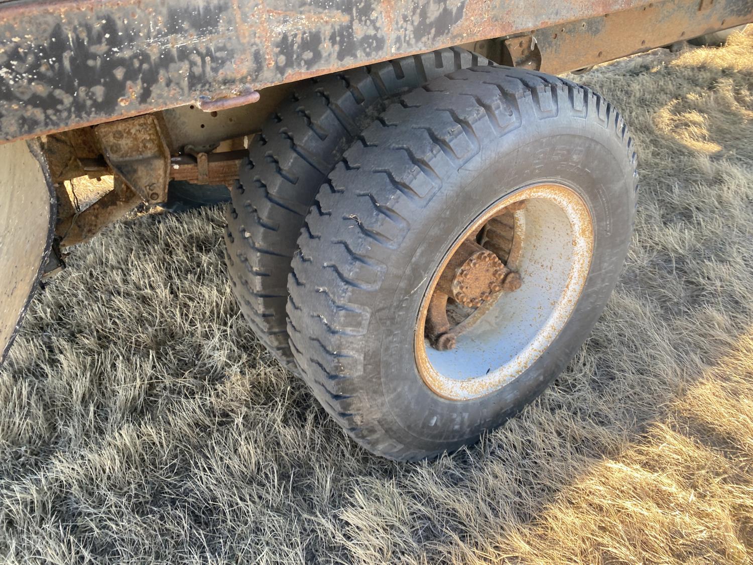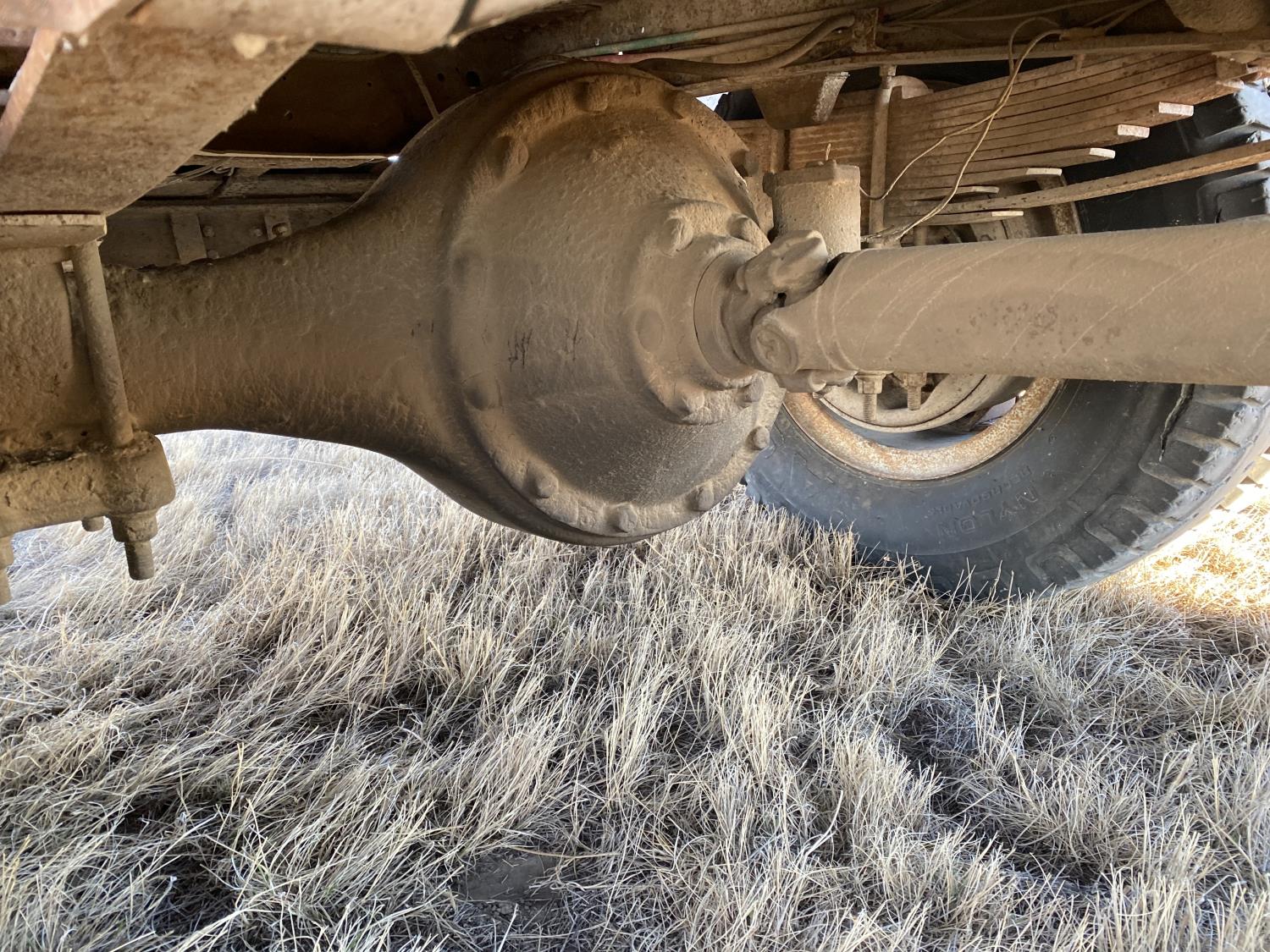 427 cu in V8 gas engine, 5X2 manual transmission, 16 ft box, hoist, PTO pump, spring suspension, 9,000 lb front axle, 18,080 lb rear axles, 190 inch WB, 10R20 front tires, 9-20 rear tires