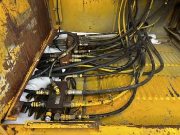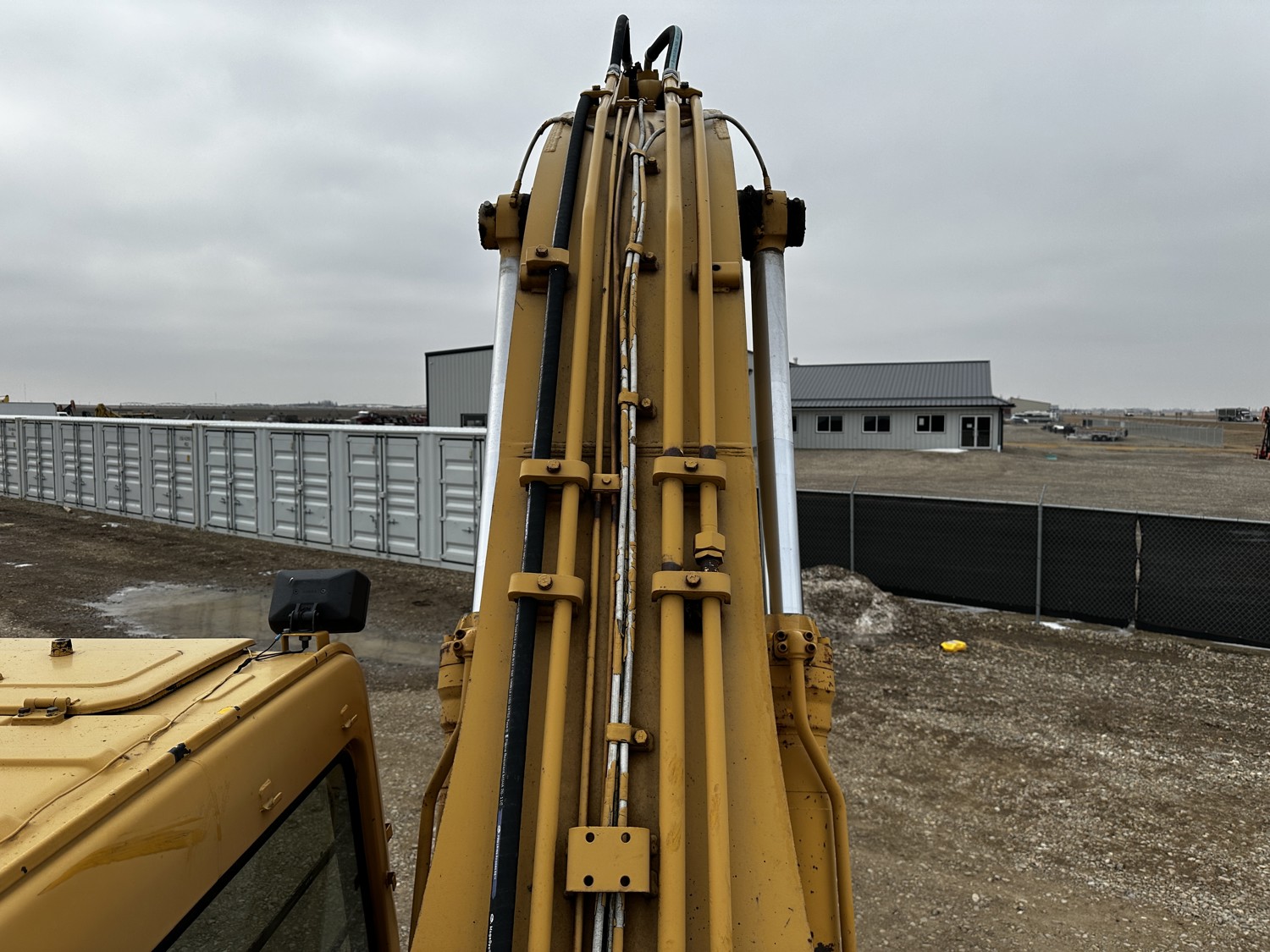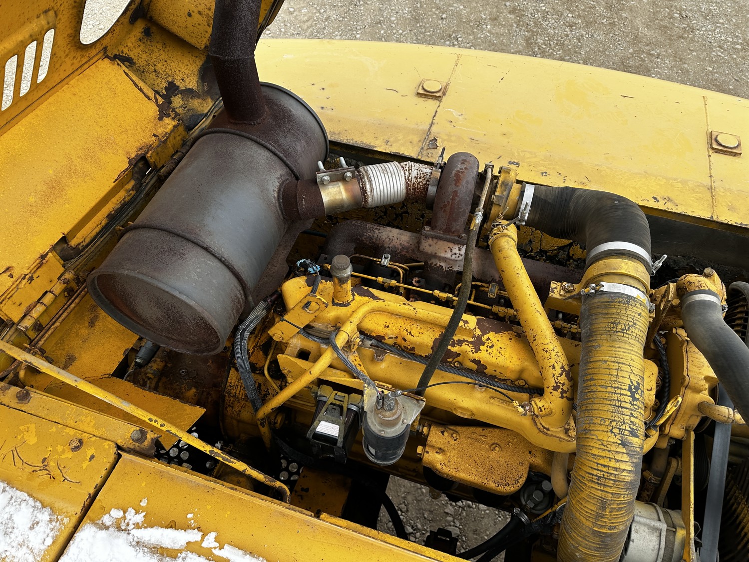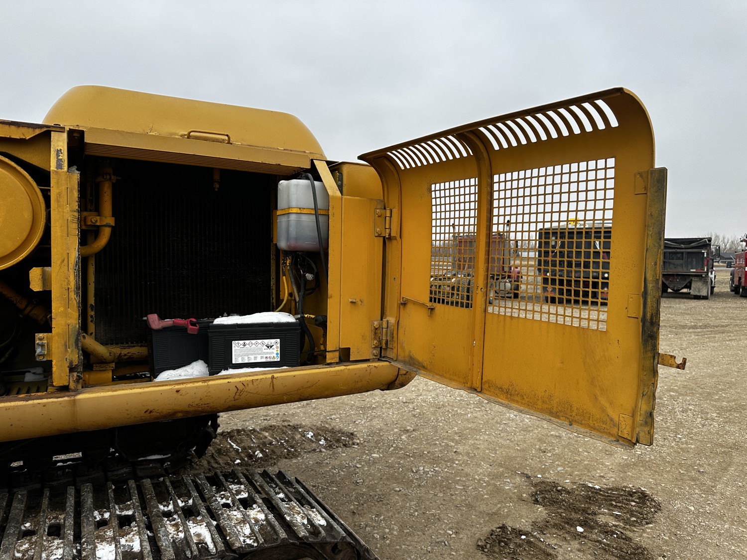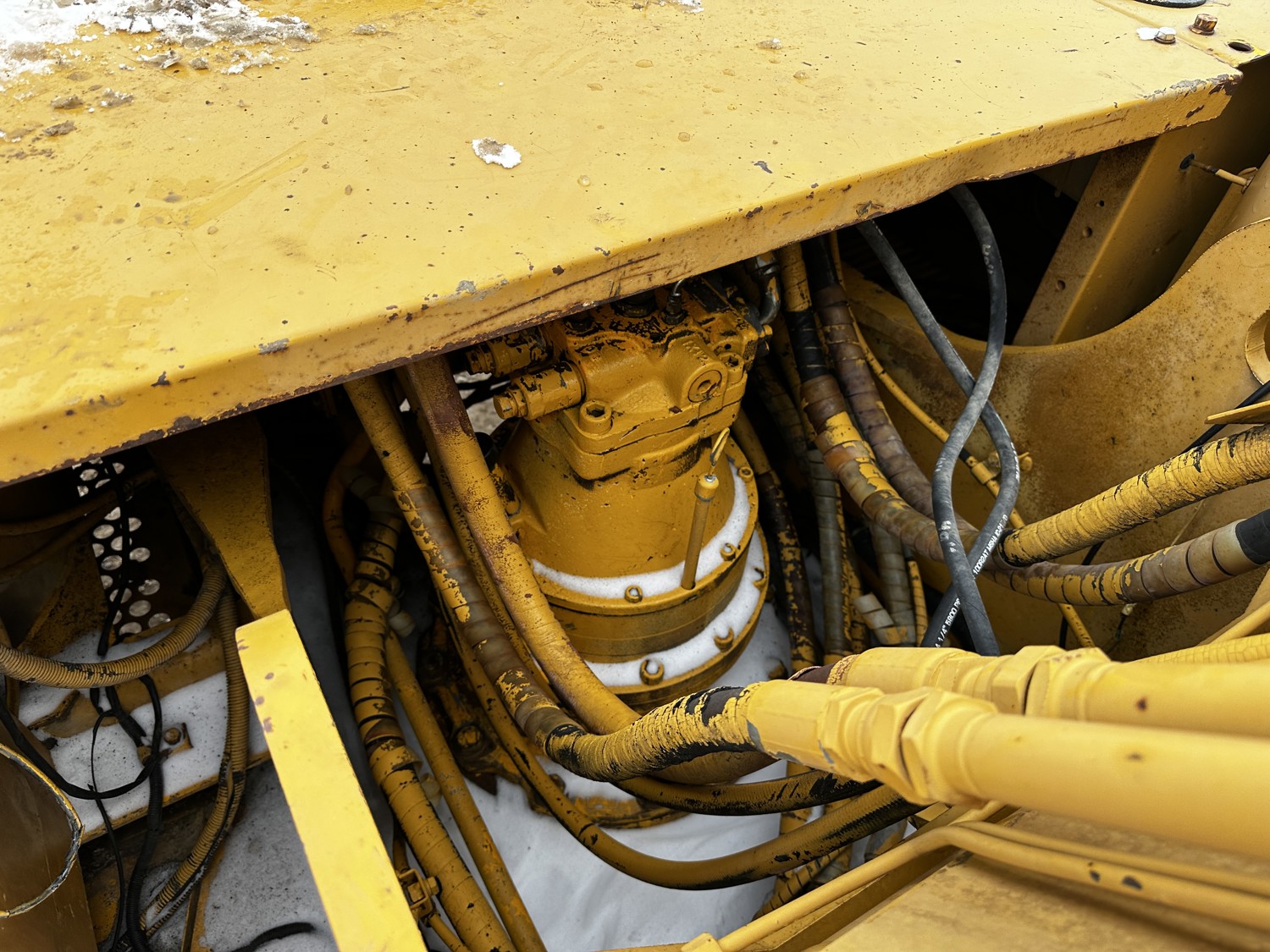 Enclosed cab, A/C, 33 inch dig bucket, manual coupler, 8 Ft 3 inch stick, auxiliary hydraulics , 24 inch track pads, triple grousers