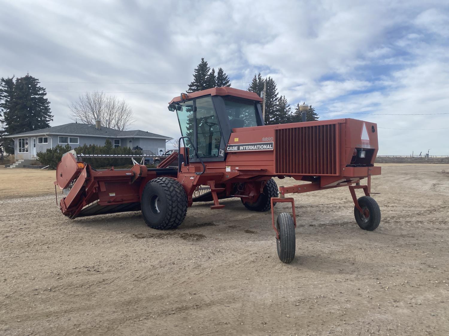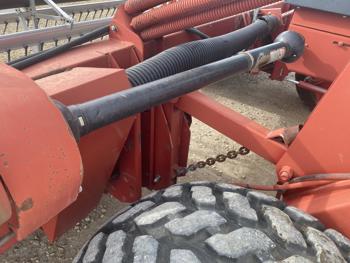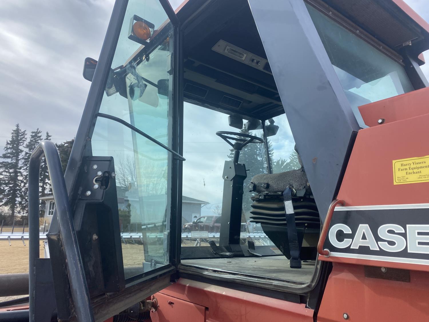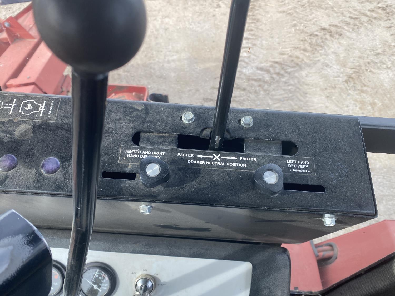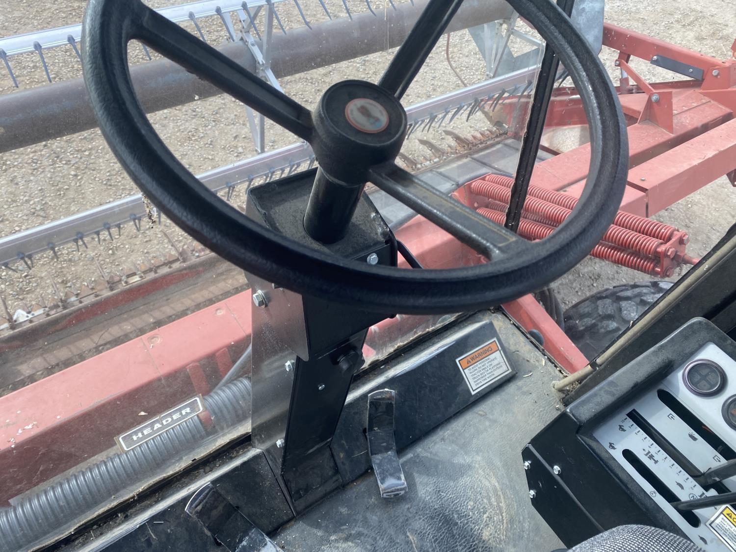 1994 Case 8830 center delivery rigid draper header, pickup reel, variable speed reel, fore & aft, crop lifters, 6 cylinder diesel engine, 21.5-16.1 front tires, 7.6-15 rear tires