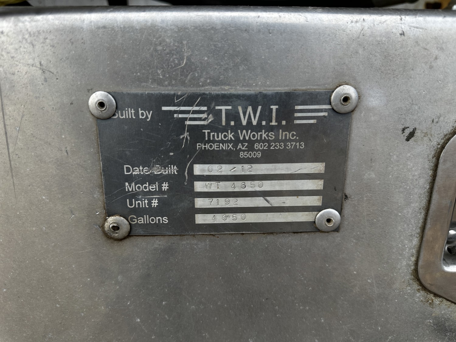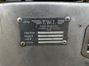 International 8.7 L 6 cylinder diesel engine, engine brake, 13 speed manual transmission, PTO pump, TWI 17600 liter 1 compartment steel tank, rear & side discharge, air ride suspension, 211 inch WB, 385/65R22.5 front tires, 11R22.5 rear tires