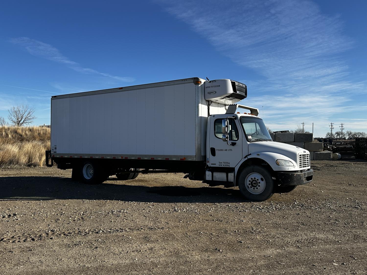 Caterpillar C7 6 cylinder 250 HP engine, Webasto diesel engine heater, 6 speed manual transmission, A/C, cruise control, leather interior, 24 ft van, Carrier reefer, hydraulic lift gate, air ride suspension, 12,000 lb front axle, 21,000 lb rear axles, 272 inch WB, 11R22.5 tires