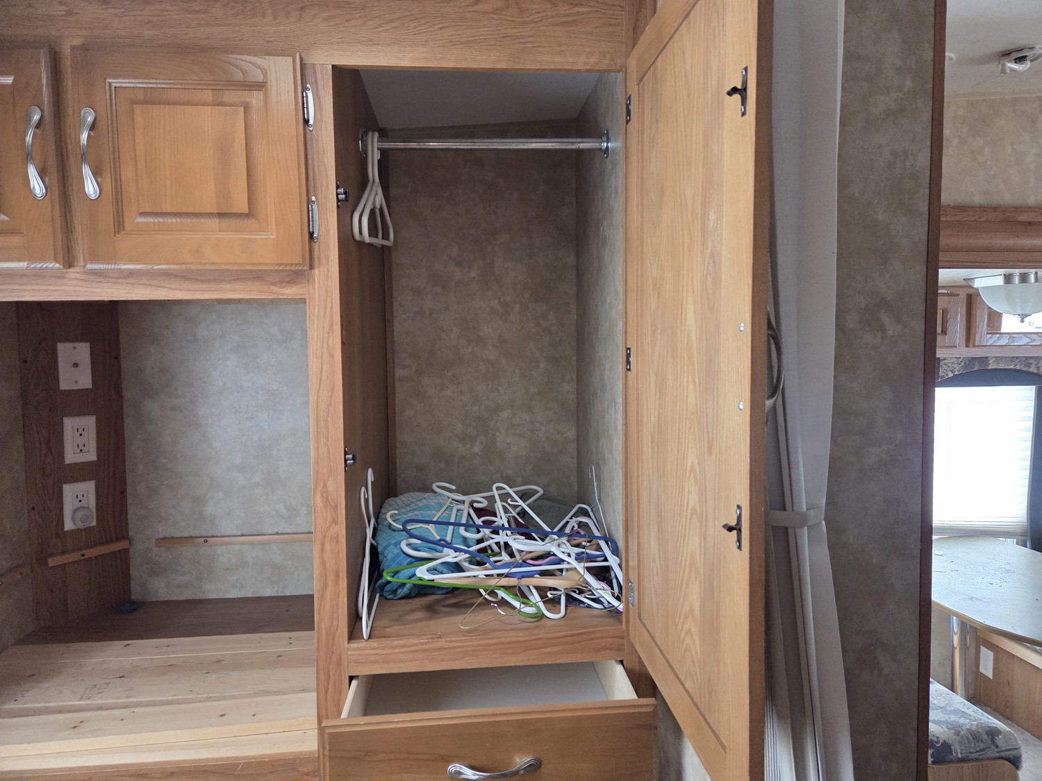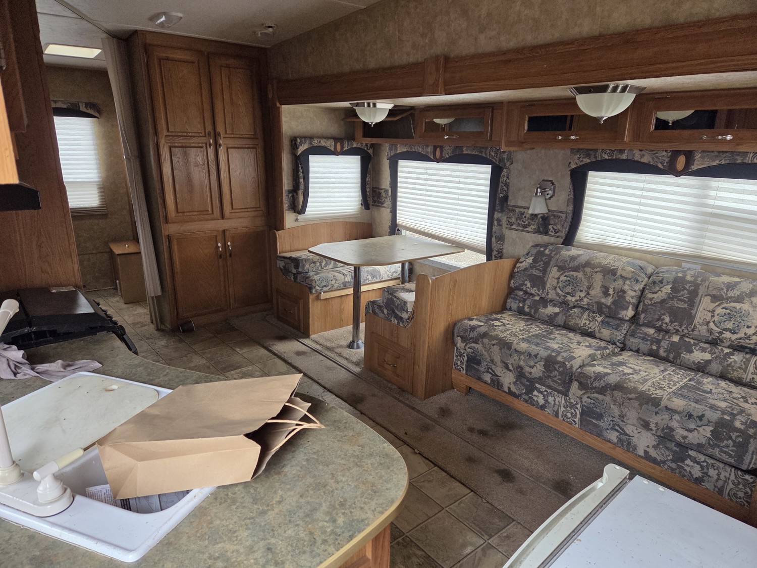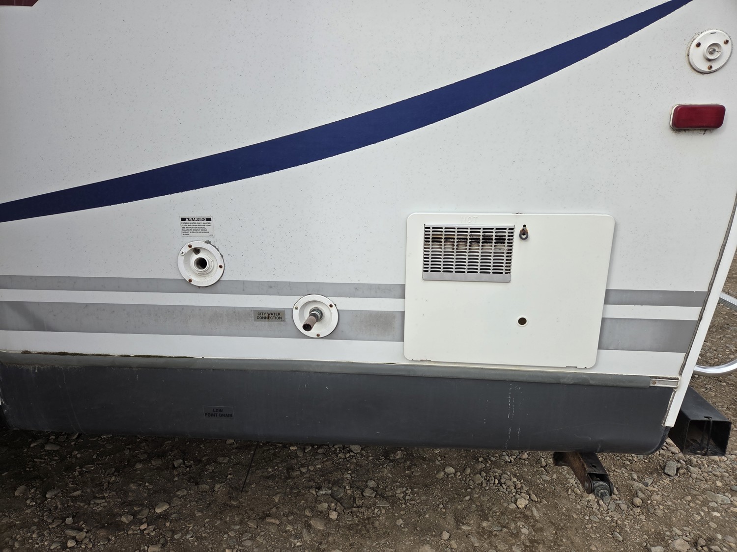 Sleeps 7, stove, fridge, microwave, master bedroom, bunk beds, A/C, outdoor shower, 2 slides, manual awning, spring suspension, electric brakes, ST225/75R15 tires