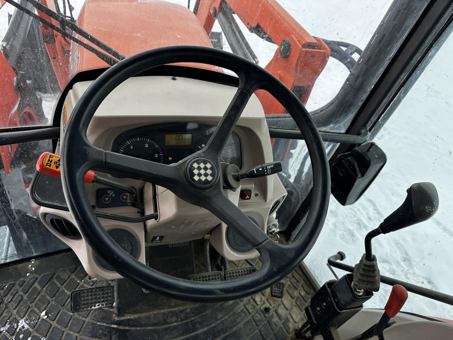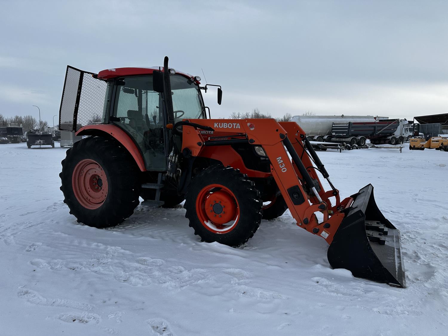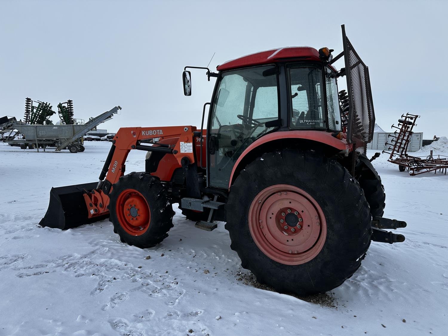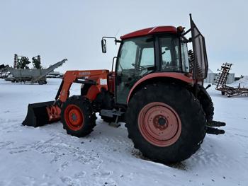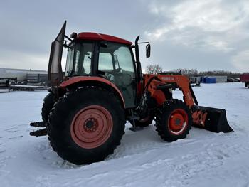 Kubota M30 loader, 84 inch bucket, 3.8 L 4 cylinder 95 HP, engine, 84 PTO HP, 12 speed fully synchronized transmission, 17 GPM hydraulic pump, cab, ROPS, left hand reverser, A/C, 5 front weights, 540 PTO, 3 point hitch, 2 rear hydraulic outlets, 12.4-24 front tires, 18.4-30 rear tires