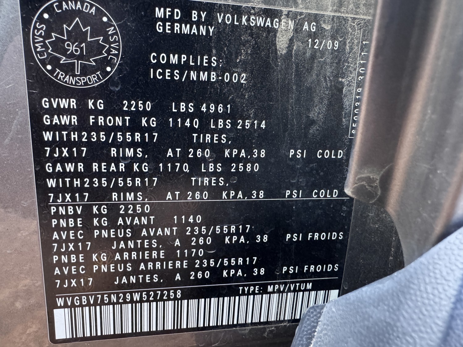 - WVGBV75N29W527258