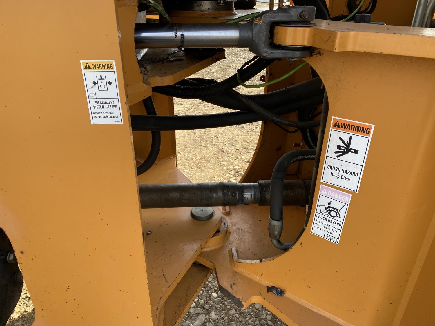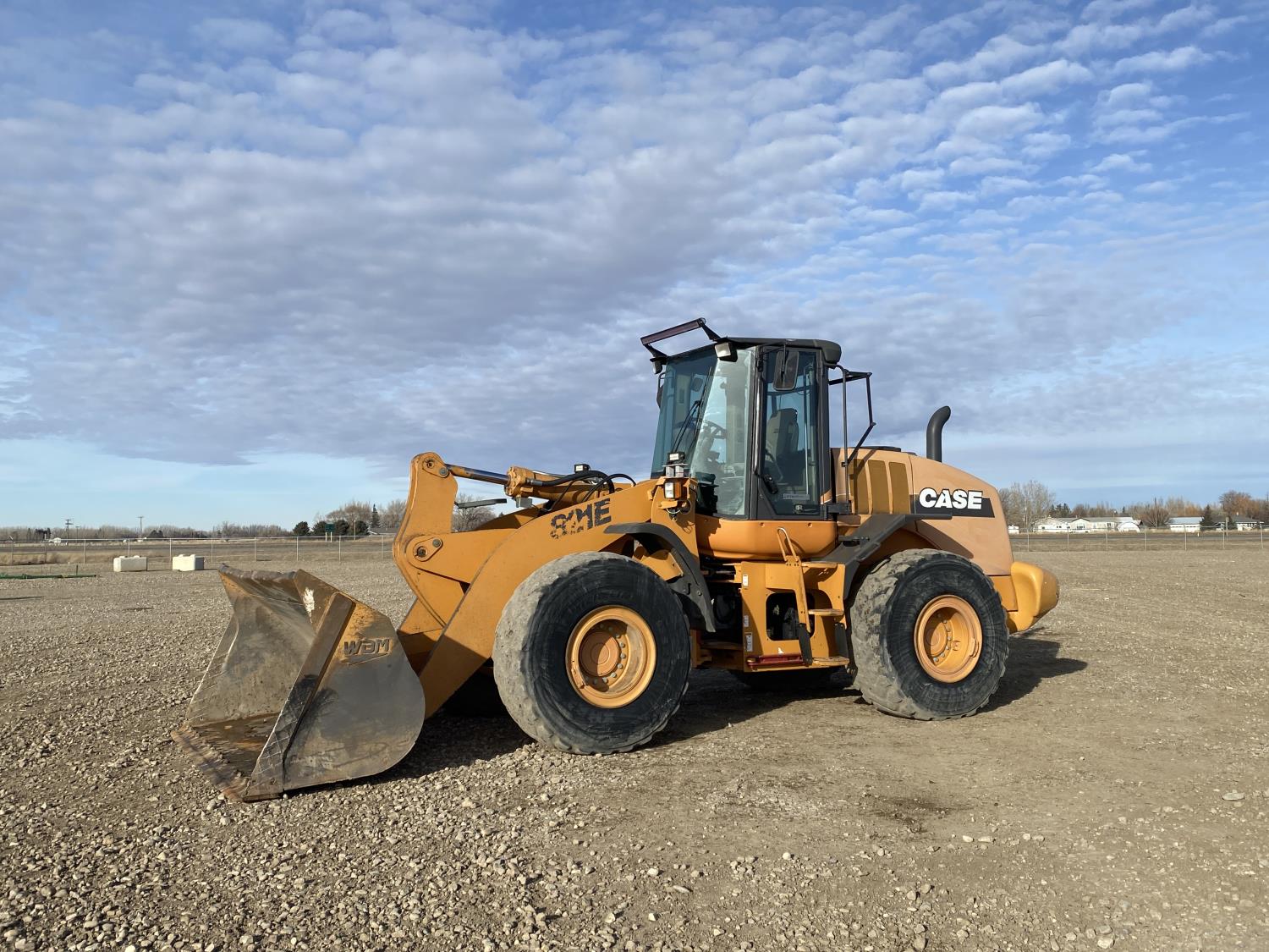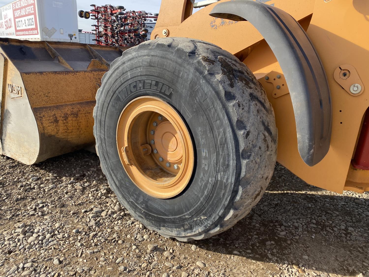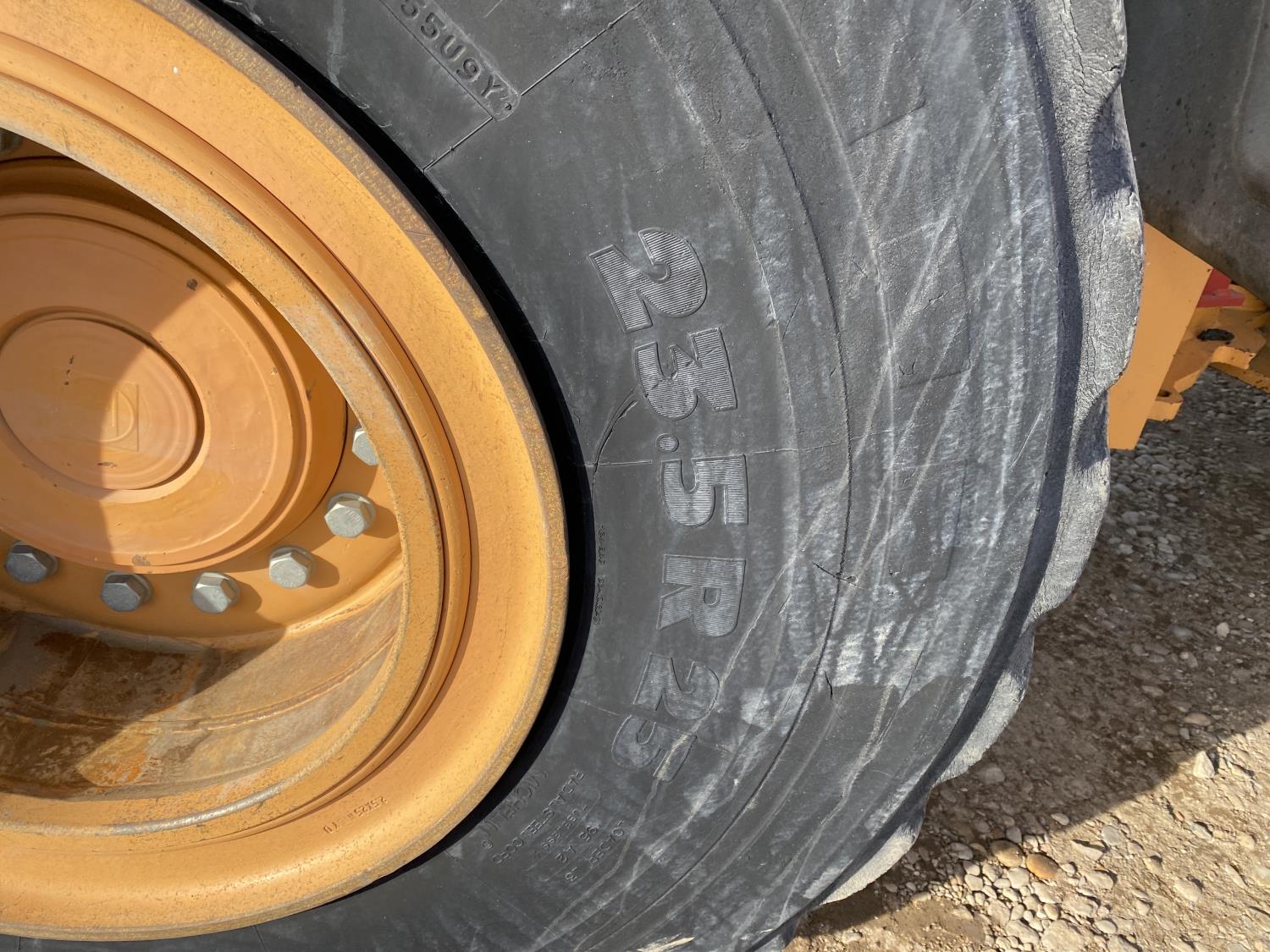 Enclosed cab, A/C, 4 speed powershift transmission, cab screens, 119 inch smooth bucket, manual coupler, auxiliary hydraulics, 23.5R25 tires
