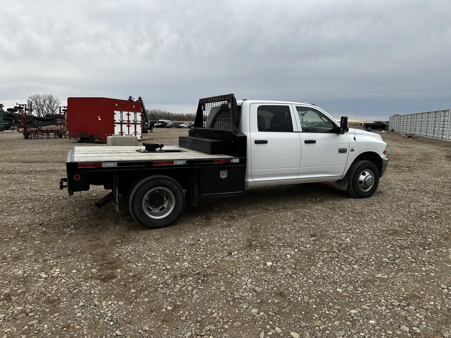 6.7 L, 6 cylinder, diesel, automatic transmission, P/W, P/L, A/C, running boards, 93 inch long deck, 102 in wide deck, steel headache rack, Oasis flatbed, flip over G/N hitch, additional fuel tank in headache rack, 235/80R17 tires