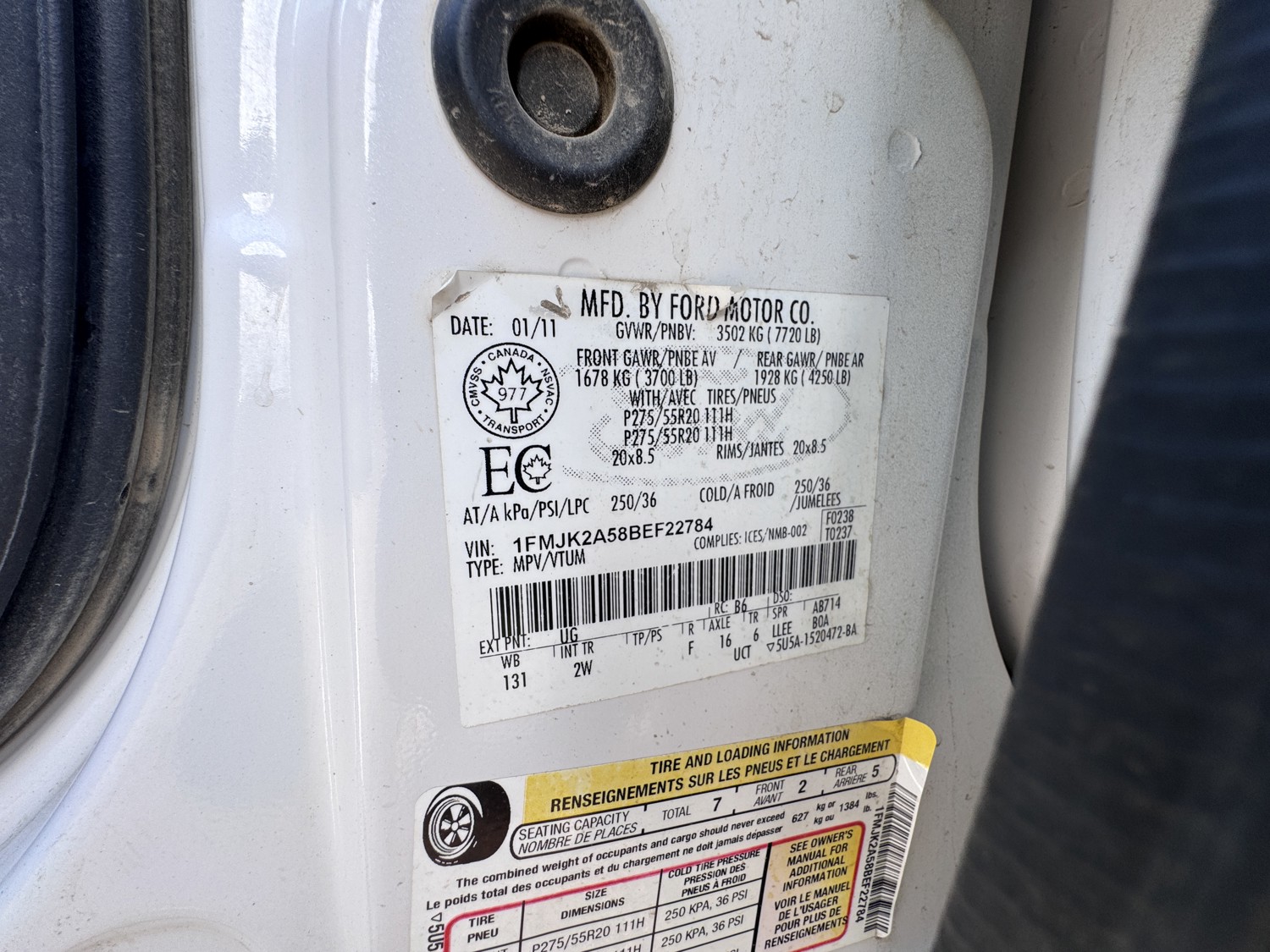 5.4 L, V8, automatic transmission, leather, P/W, P/L, A/C, navigation system, heated mirrors, 3rd row seating, DVD player, sunroof, heated and cooled seats, 275/55R20 tires