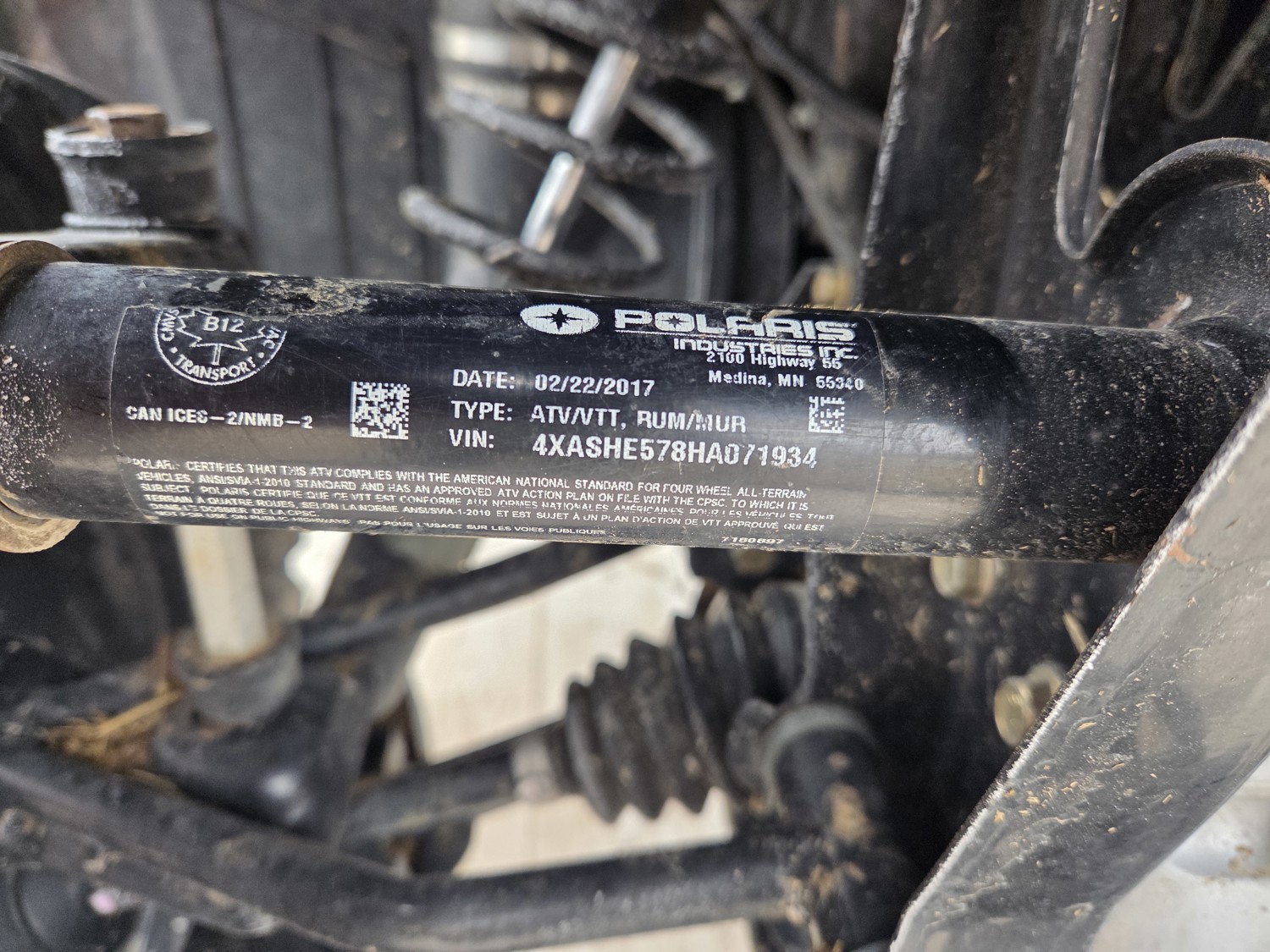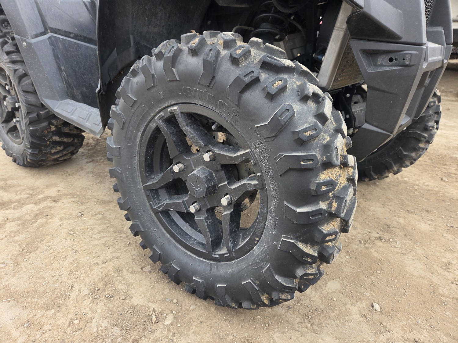 570 cc engine, CVT transmission, Hi/Lo range, reverse, power steering, receiver hitch, 26X9.00R14 front tires, 26X10.00R14 rear tires