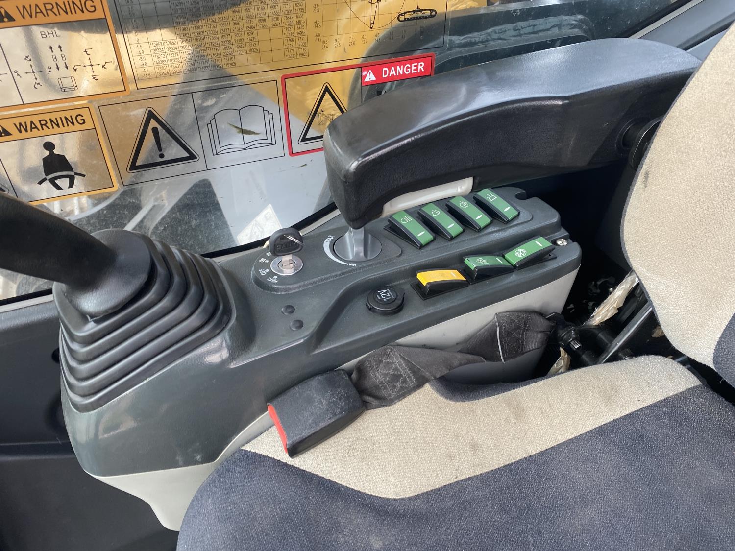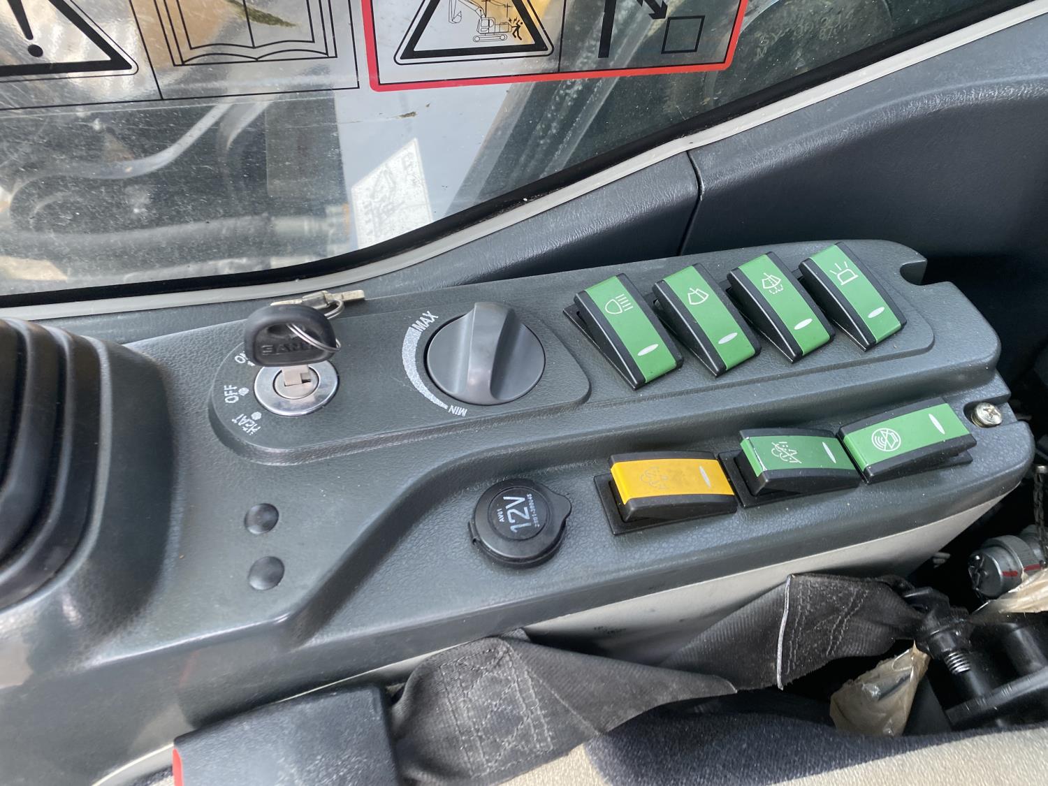 Enclosed cab, A/C, rear view cameras, DEF required, electric circulating block heater, cab screens, 48 inch dig bucket, manual coupler, 10 Ft 5 inch stick, auxiliary hydraulics, 32 inch track pads, triple grousers