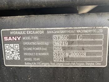 488 2021 Sany SY365C LC 36 Ton Excavator