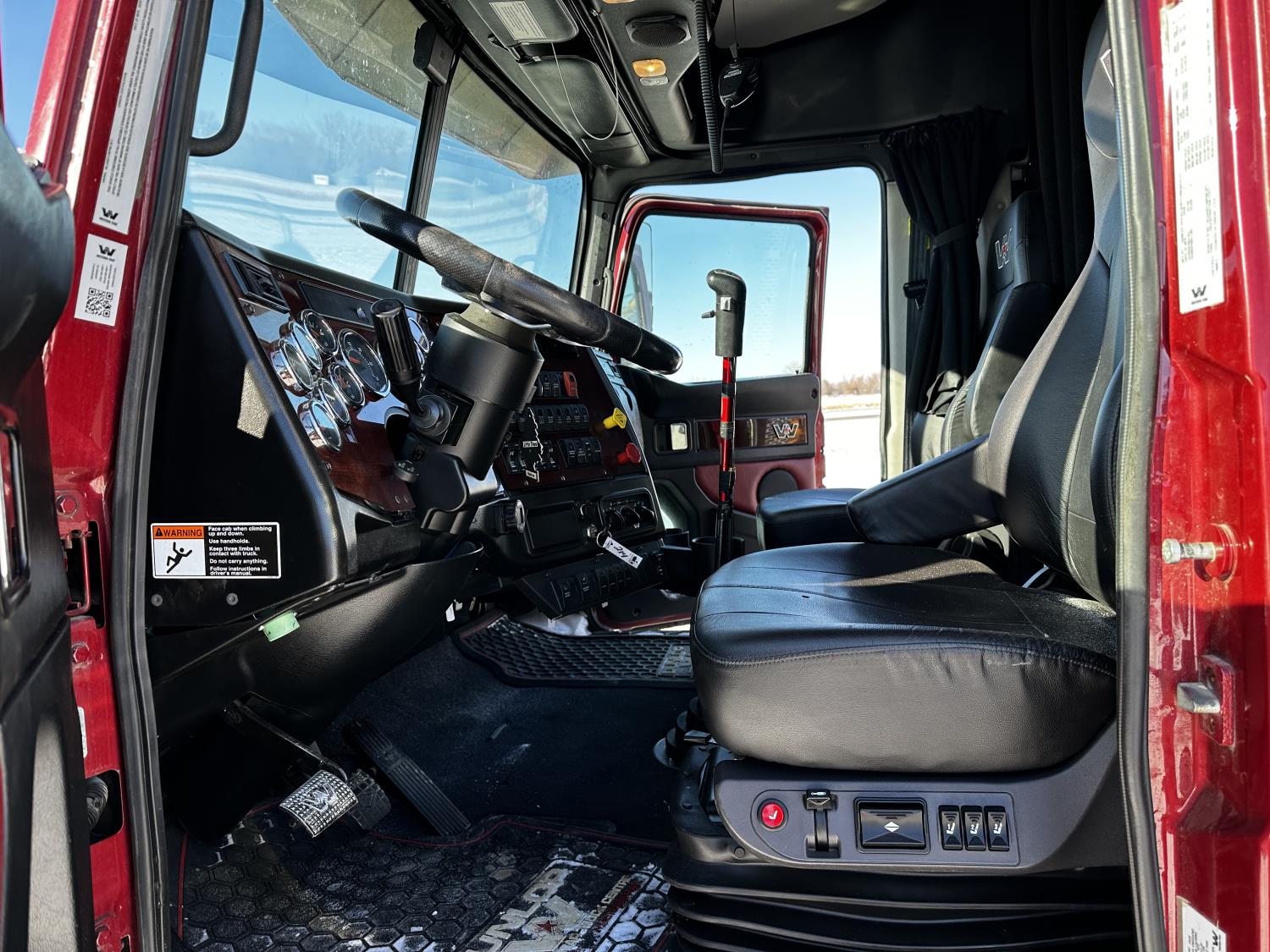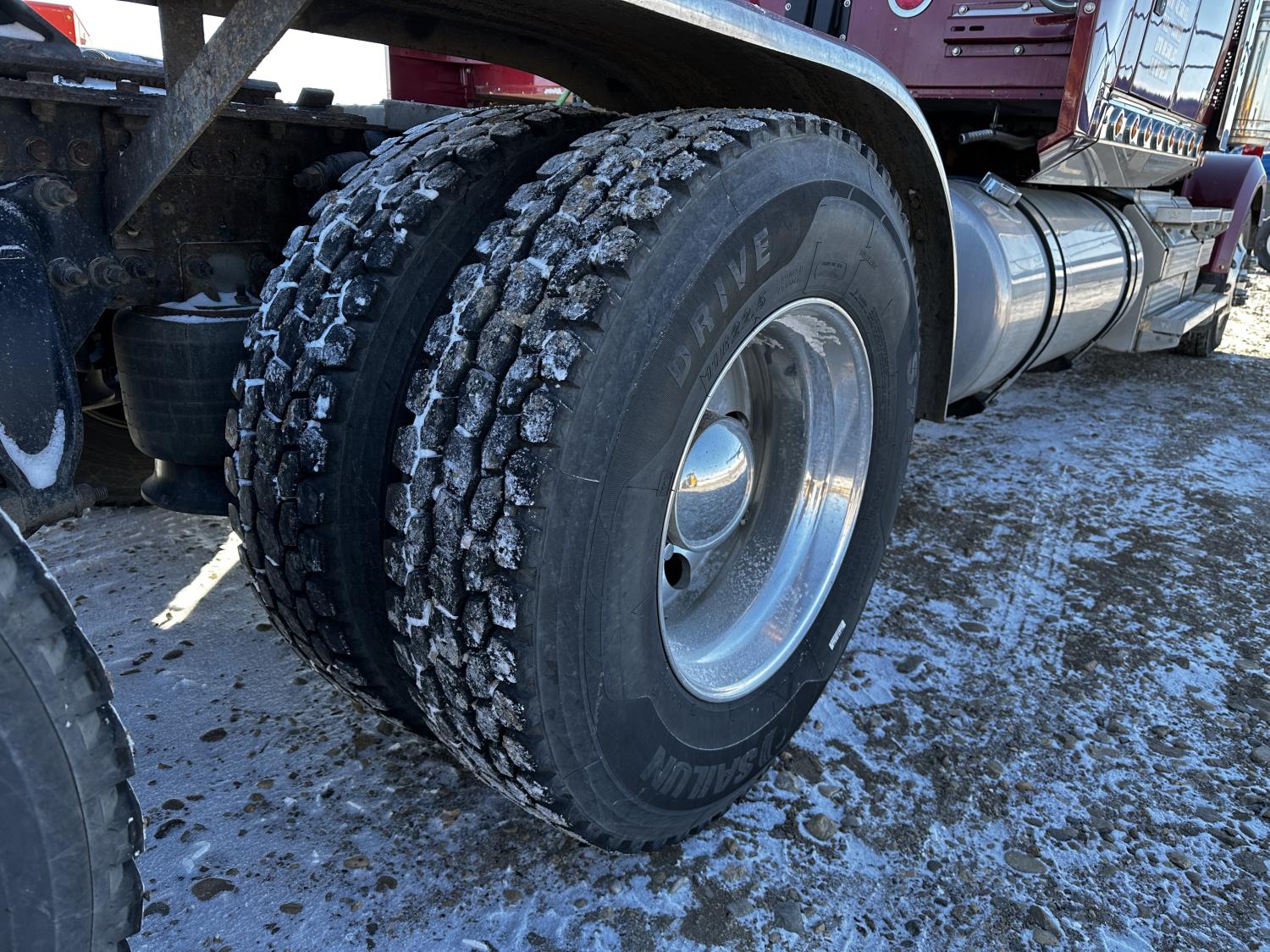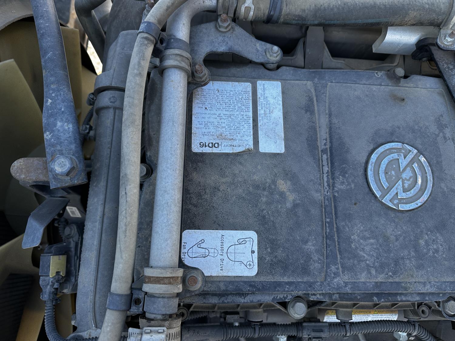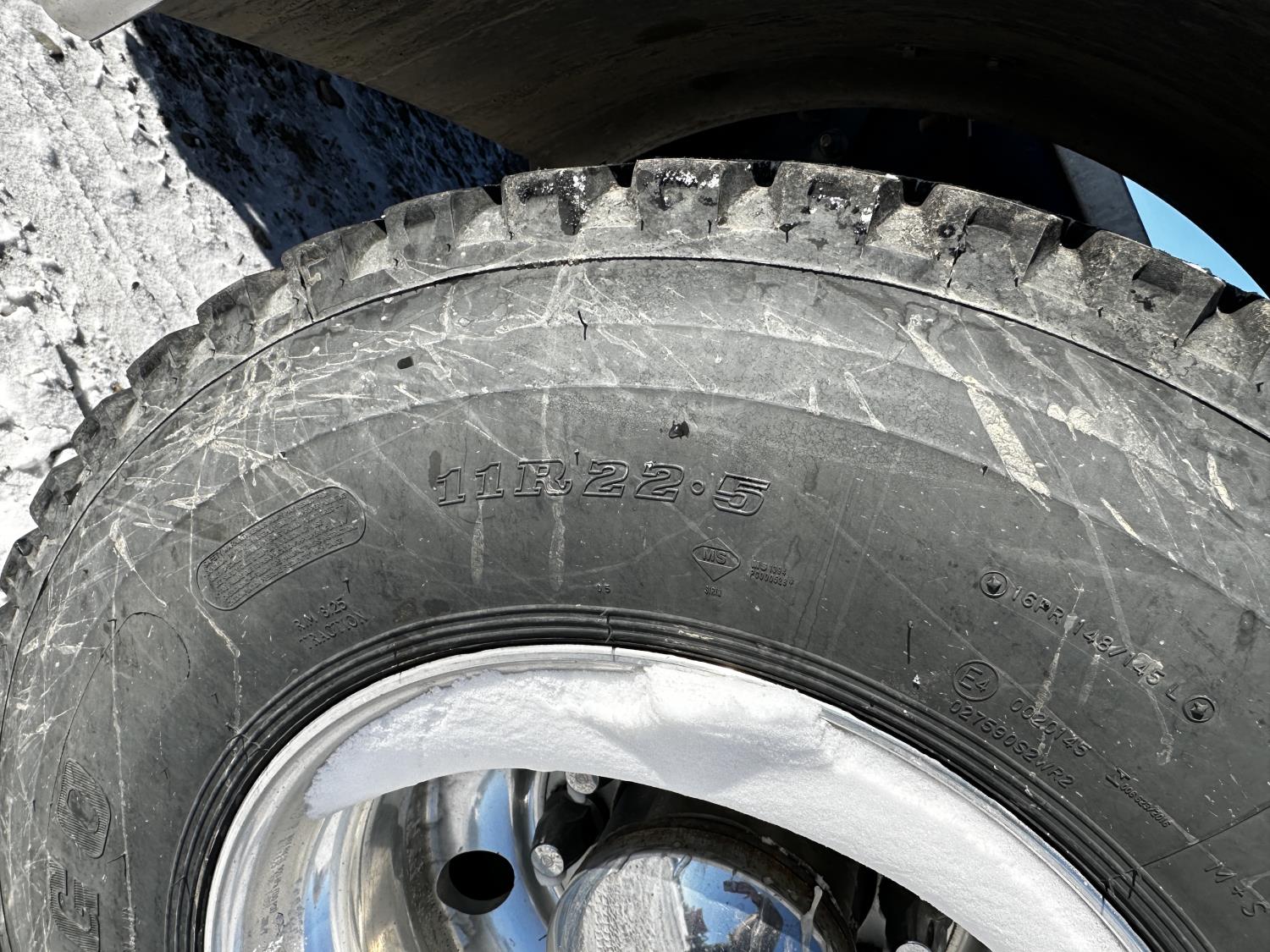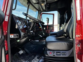 Detroit DD16 15.6 L 6 cylinder 600 HP engine, DEF required, engine brake, engine block heater, Eaton Fuller 18 speed manual transmission, Webasto cab heater, mid rise 72 inch sleeper, fridge, A/C, cruise control, leather interior, air ride seats, CB radio, air ride cab, air ride suspension, 13,220 lb front axle, 40,000 lb rear axles, full lockers, 262 inch WB, all aluminum wheels, 11R22.5 tires