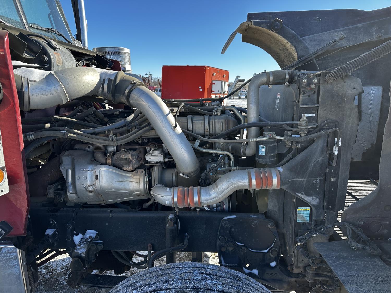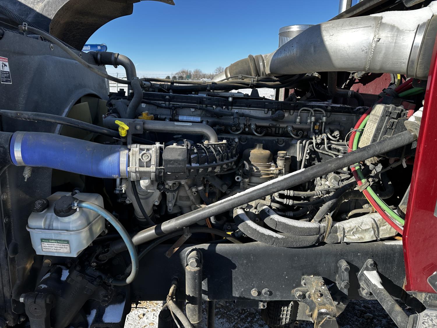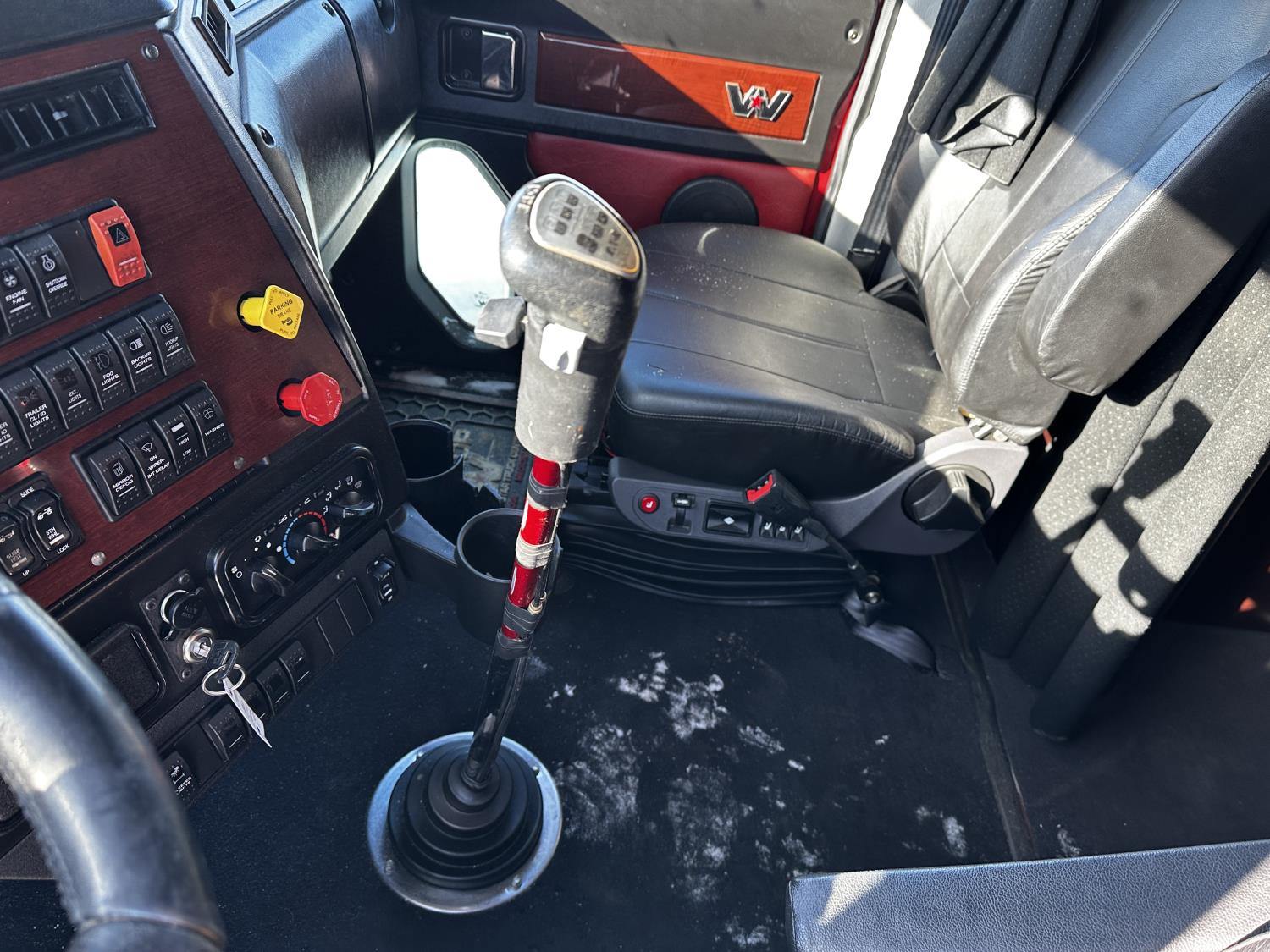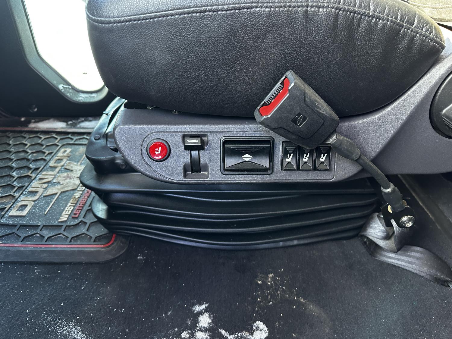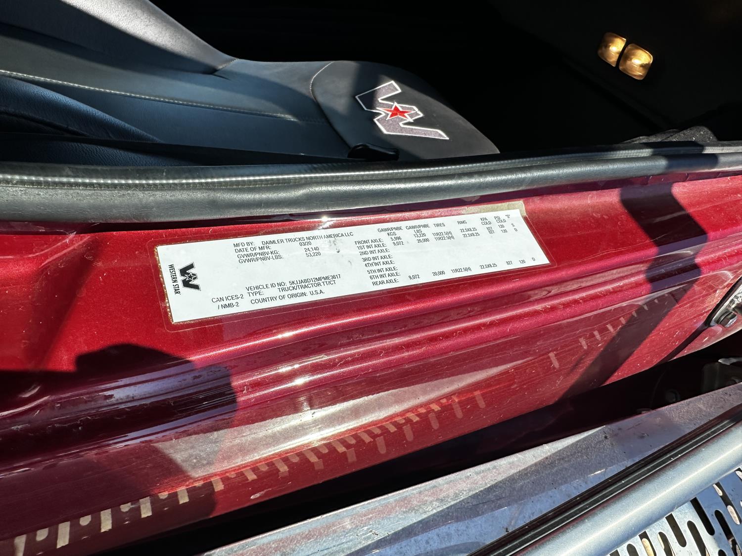 Detroit DD16 15.6 L 6 cylinder 600 HP engine, DEF required, engine brake, engine block heater, Eaton Fuller 18 speed manual transmission, Webasto cab heater, mid rise 72 inch sleeper, fridge, A/C, cruise control, leather interior, air ride seats, CB radio, air ride cab, air ride suspension, 13,220 lb front axle, 40,000 lb rear axles, full lockers, 262 inch WB, all aluminum wheels, 11R22.5 tires