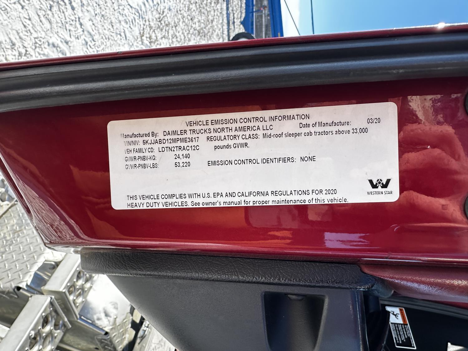 406 2021 Western Star 4900EX T/A Sleeper Truck Tractor