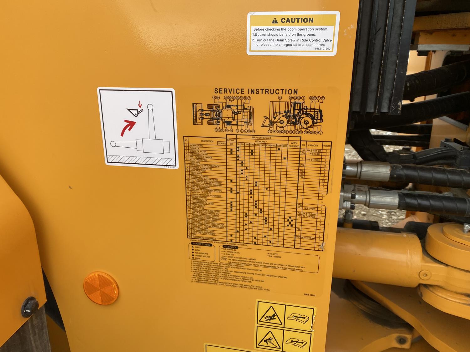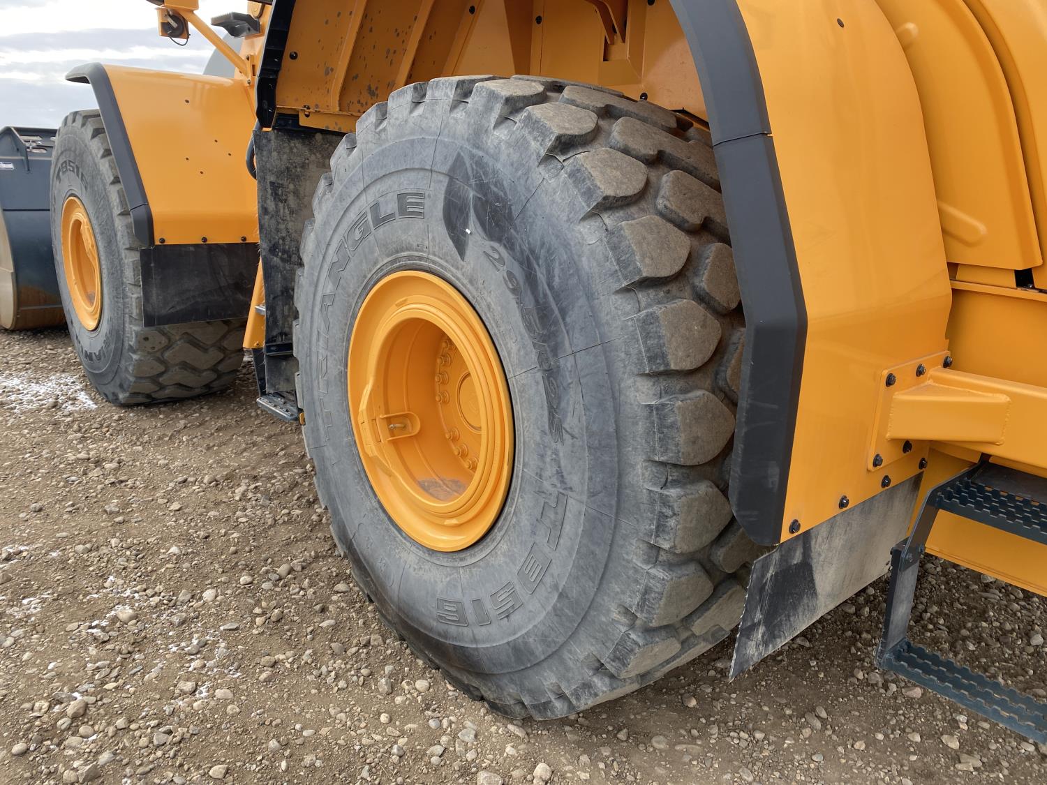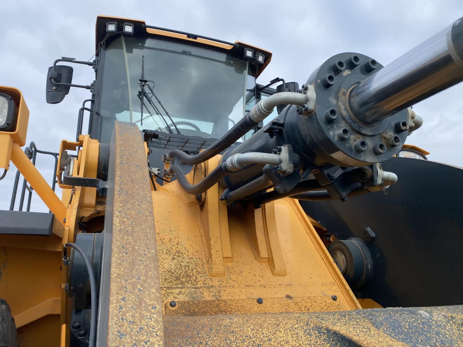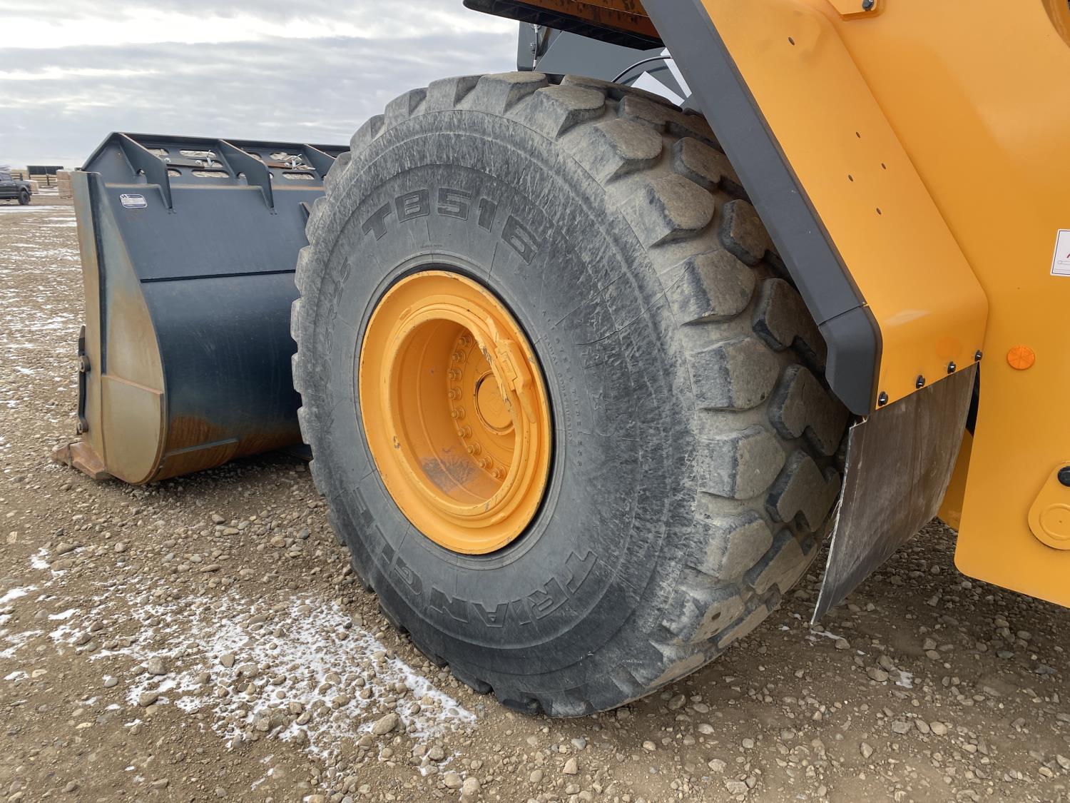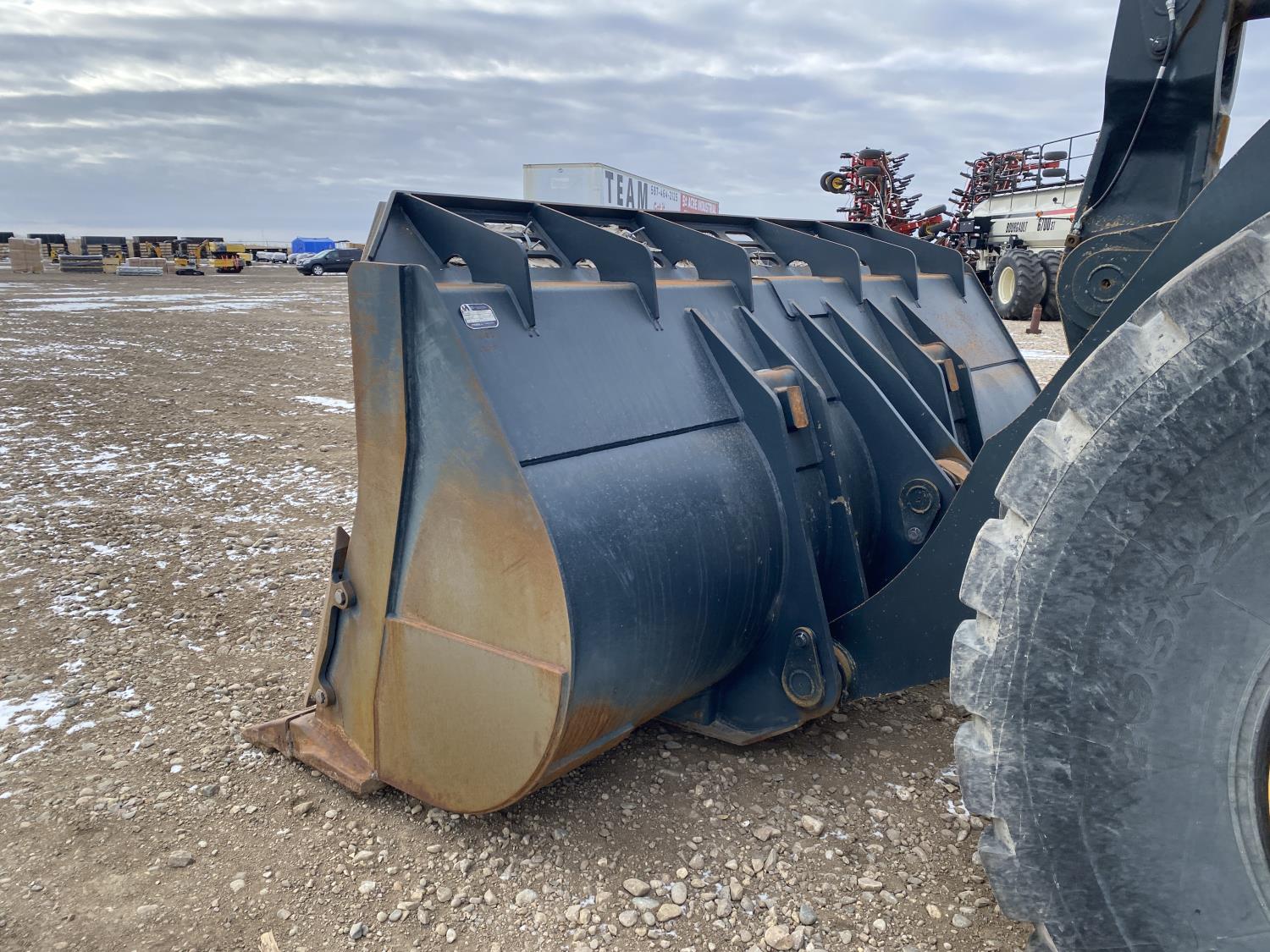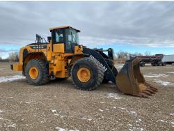 Enclosed cab, A/C, rear view cameras, 4 speed powershift transmission, scale, electric circulating block heater, cab screens, 140 inch toothed bucket, manual coupler, 29.5R25 tires