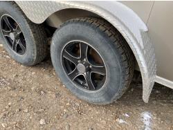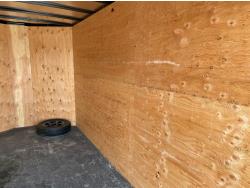 84 inch interior width, 86 inch interior height, 2-5/16 inch ball hitch, side door, fold down door, electric brakes, spring suspension, 3508 lb axles, 205/75R15 tires
